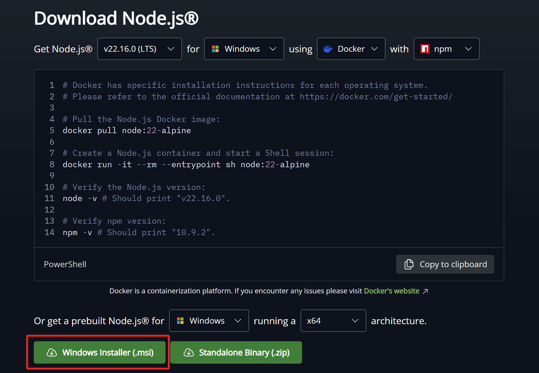 首先需要安装 npm,您可以直接通过以下链接进行下载并安装。