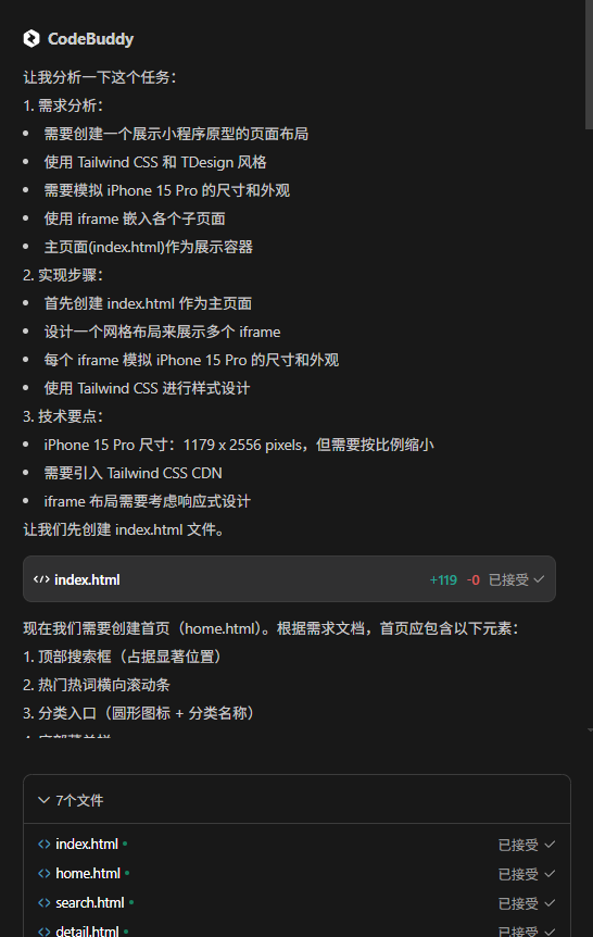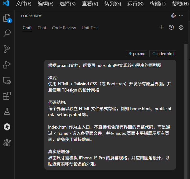 接下来,我将使用 CodeBuddy 来生成产品原型图。以下是我所使用的提示词: