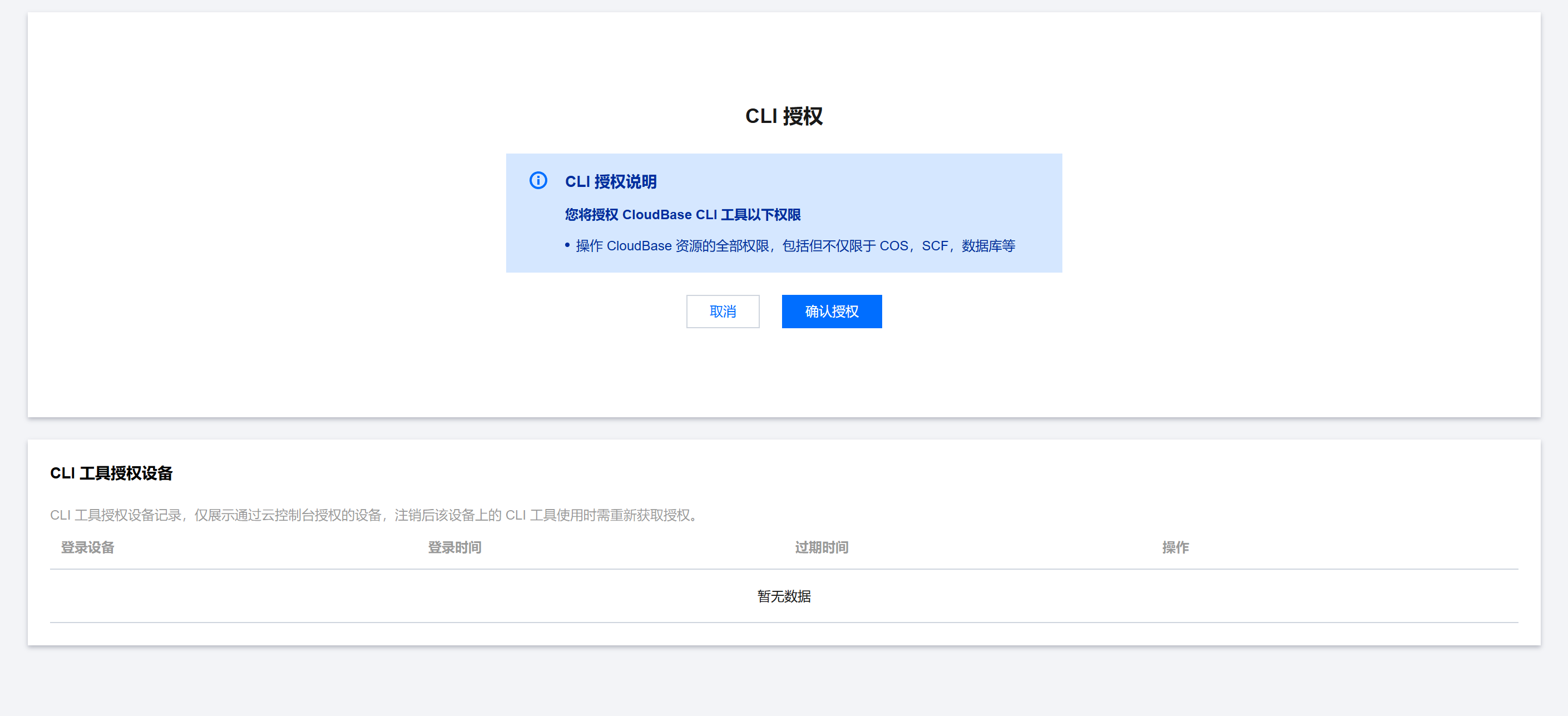 操作步骤:CodeBuddy 助手输入“登录云开发” → 弹窗 → 授权完成。
