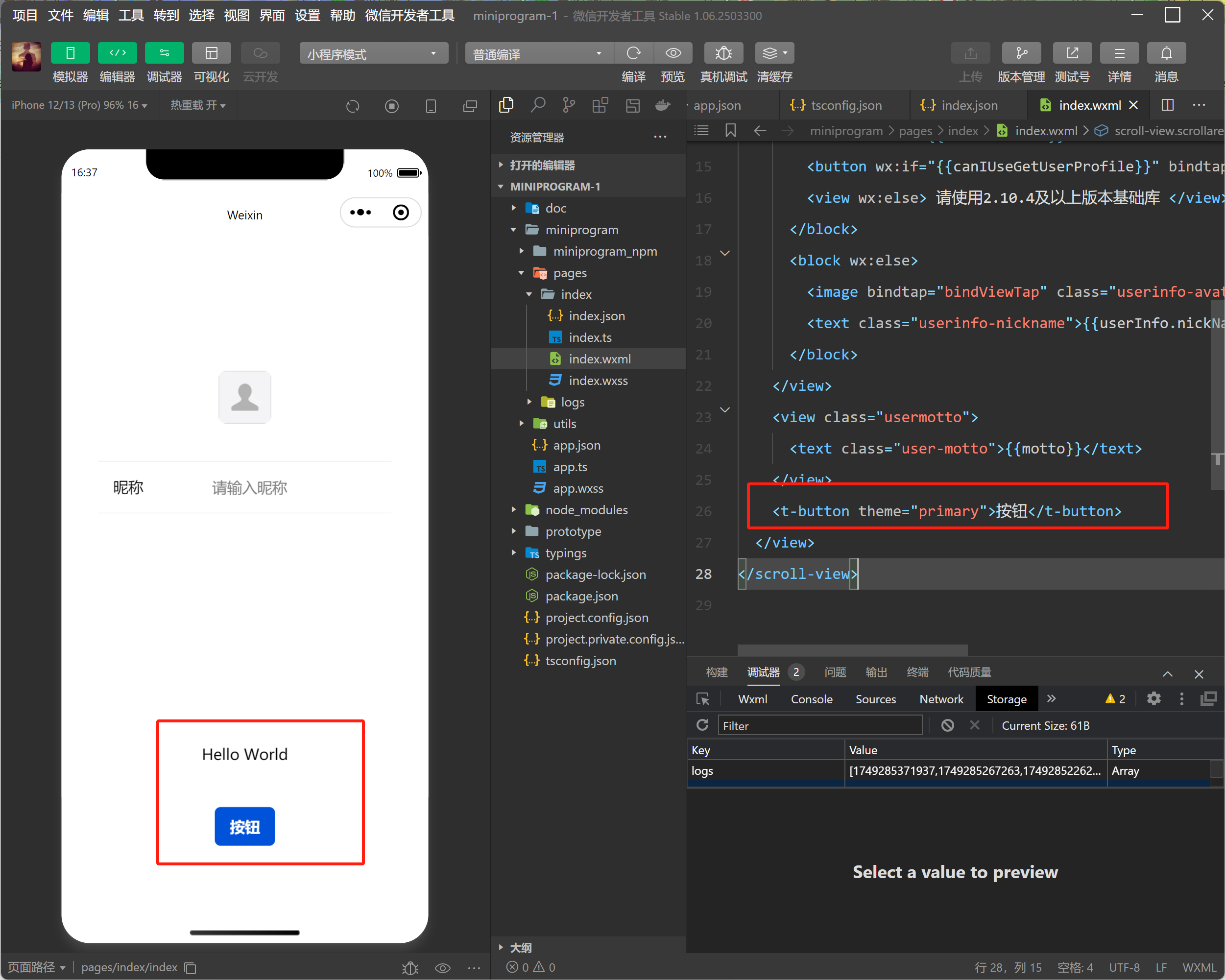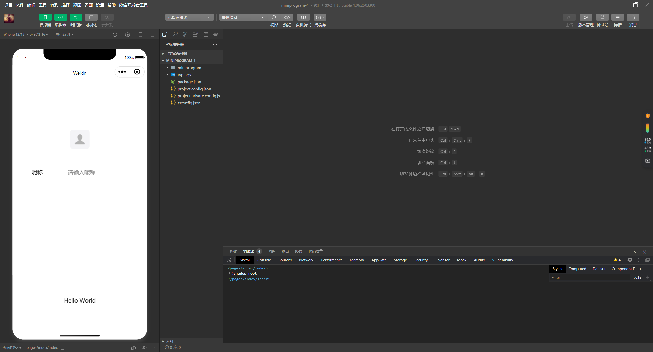 现在切换回 微信开发者工具,点击 “清除缓存” 后重新编译。