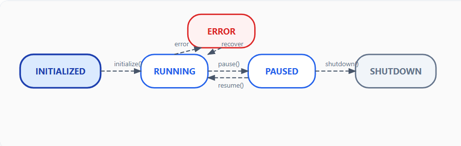 }Agent 状态遵循有限状态机模型: