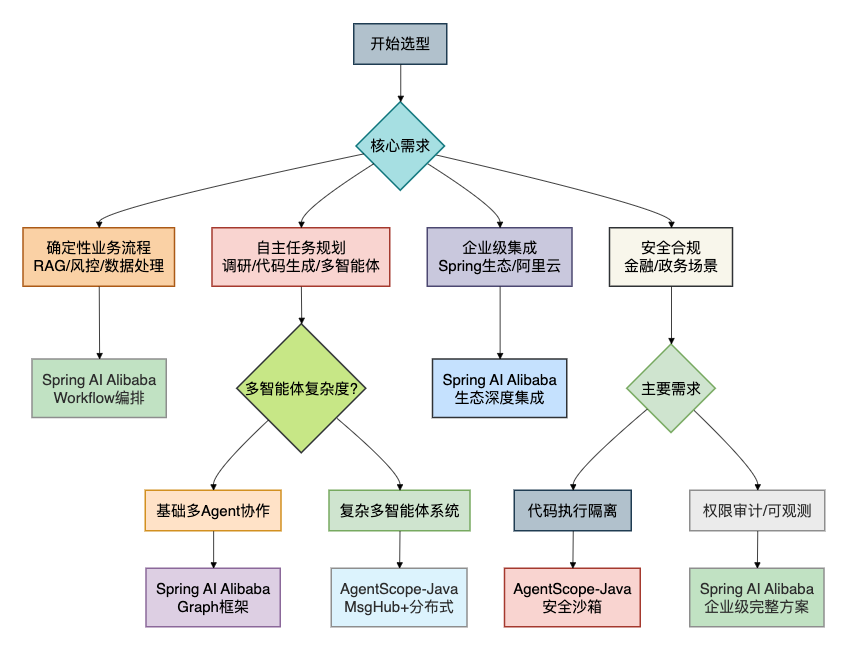 开发者可以同时使用这两个框架——用Spring AI Alibaba做工作流编排,用AgentScope-Java构建自主Agent,实现“大局可控,局部自主”的最佳实践。