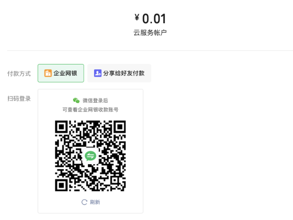 4. 企业户名添加成功后,界面中会出现腾讯云专用收款账户信息,请根据收款单信息,完成网银转账充值。