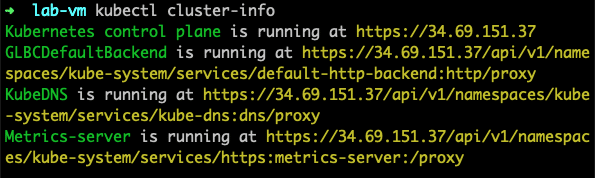 kubectl cluster-infoThe output would look like the following.