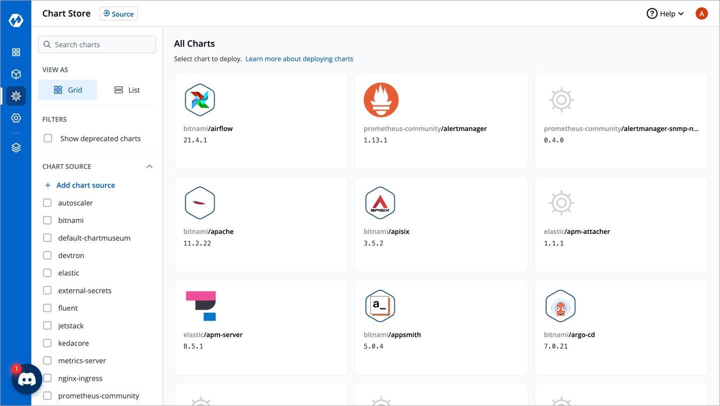 Refer Manage Helm Apps to know the process of deploy helm charts from the chart store.