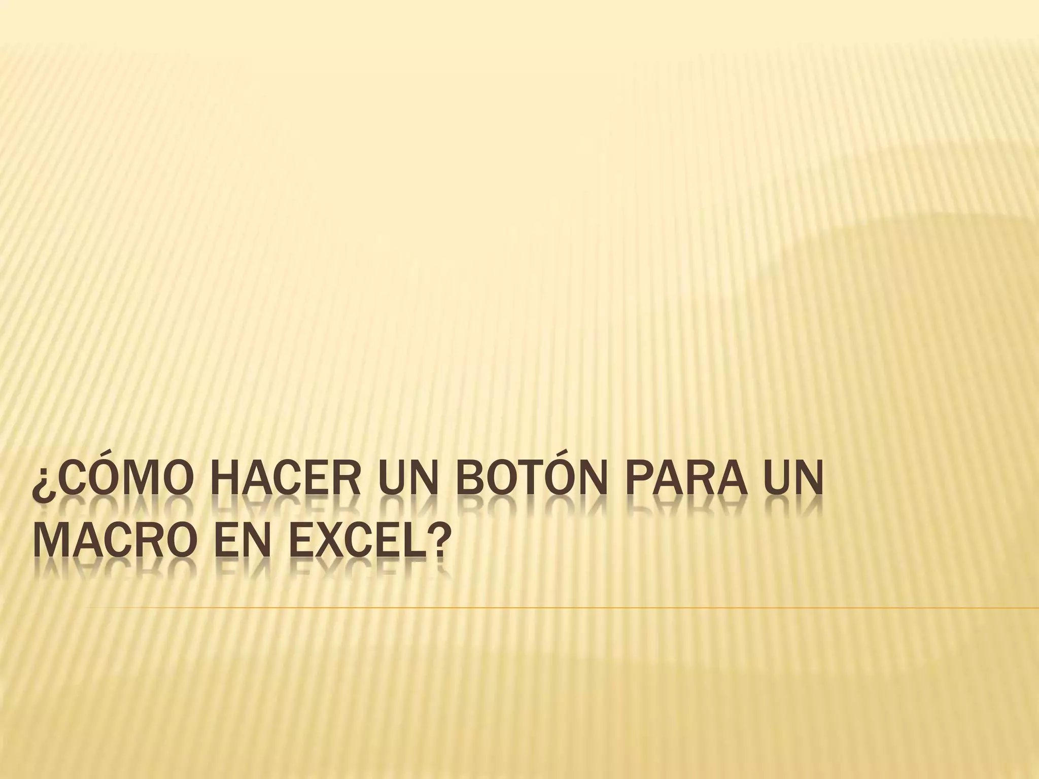 Este documento proporciona instrucciones en 7 pasos para crear un botón en Excel que ejecute un macro. Explica cómo agregar la barra Desarrollador para acceder a los controles necesarios, insertar un botón, asignarle un macro existente o crear uno nuevo, modificar el diseño y texto del botón, y finalmente colocarlo en la hoja de cálculo.