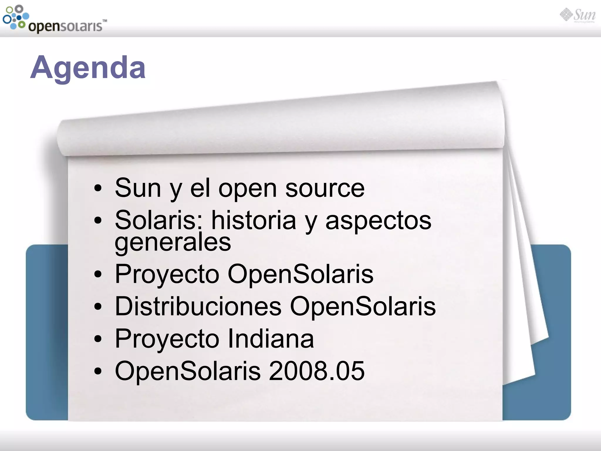 El documento proporciona una introducción a OpenSolaris, un sistema operativo basado en Unix desarrollado por Sun Microsystems, destacando su historia, características, y proyectos relacionados como Indiana. Además, se abordan las ventajas de OpenSolaris en términos de tecnología y soporte, así como los diversos tipos de distribuciones disponibles, incluidas Solaris Express y la comunidad de desarrolladores. Se enfatiza la importancia de la interoperabilidad y mejoras en la instalación y uso para atraer a nuevos usuarios.
