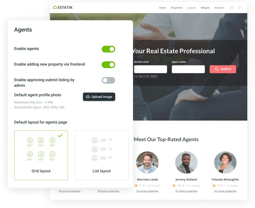 Instil confidence in your visitors by displaying well-designed agent and agency profile pages.