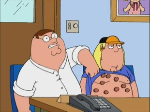 Peter becomes very upset when NBC cancels his favorite show; Gumbel 2 Gumbel Beach Justice, a sitcom starring brothers Bryant Gumbel and Greg Gumbel. Lois suggests he use the series' cancellation to help Chris improve his study habits. To get the show back on the air, Peter decides to tell the Grant-A-Dream Foundation that being able to watch the show is Chris's dying wish. To this end, he makes up a disease called "tumasyphilisitisosis," the symptoms of which include growing extra nipples, faked with pepperoni slices, across one's torso.