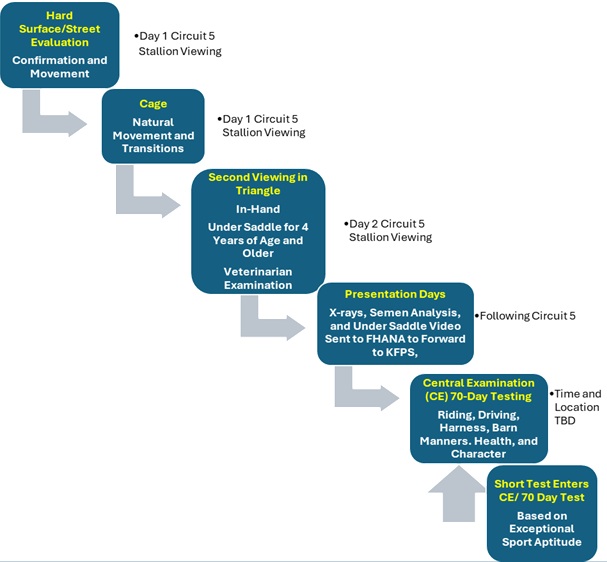 The Stallion Viewing schedule will be announced soon. The following graphic outlines the approval process for entry into the KFPS Studbook.