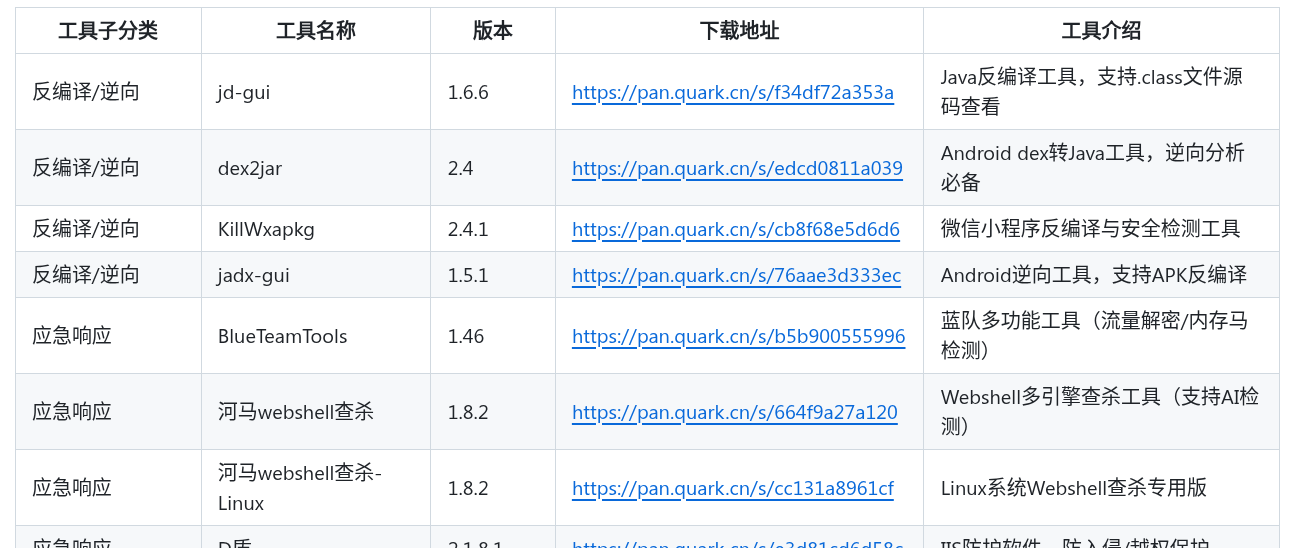 - 全部运维&甲方&防守方工具:应急响应、内存马查杀、日志分析、流量抓包、代码审计、反编译/逆向、应急流程和说明