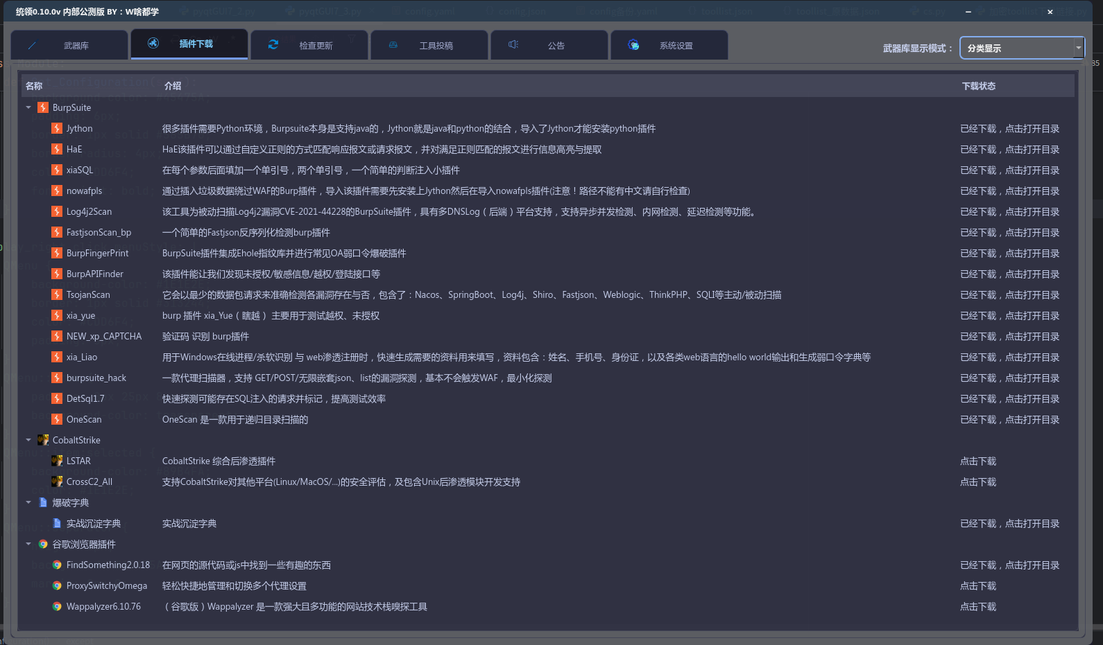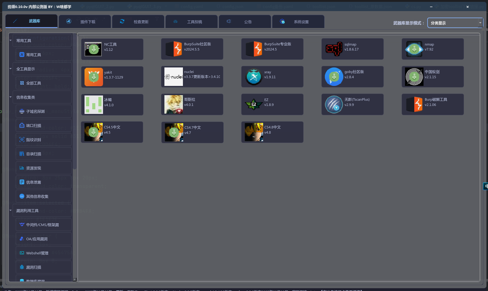 - 漏洞利用工具:中间件/CMS/框架漏、OA/应用漏洞、Webshell管理、漏洞扫描、数据库漏洞、XSS漏洞、综合利用