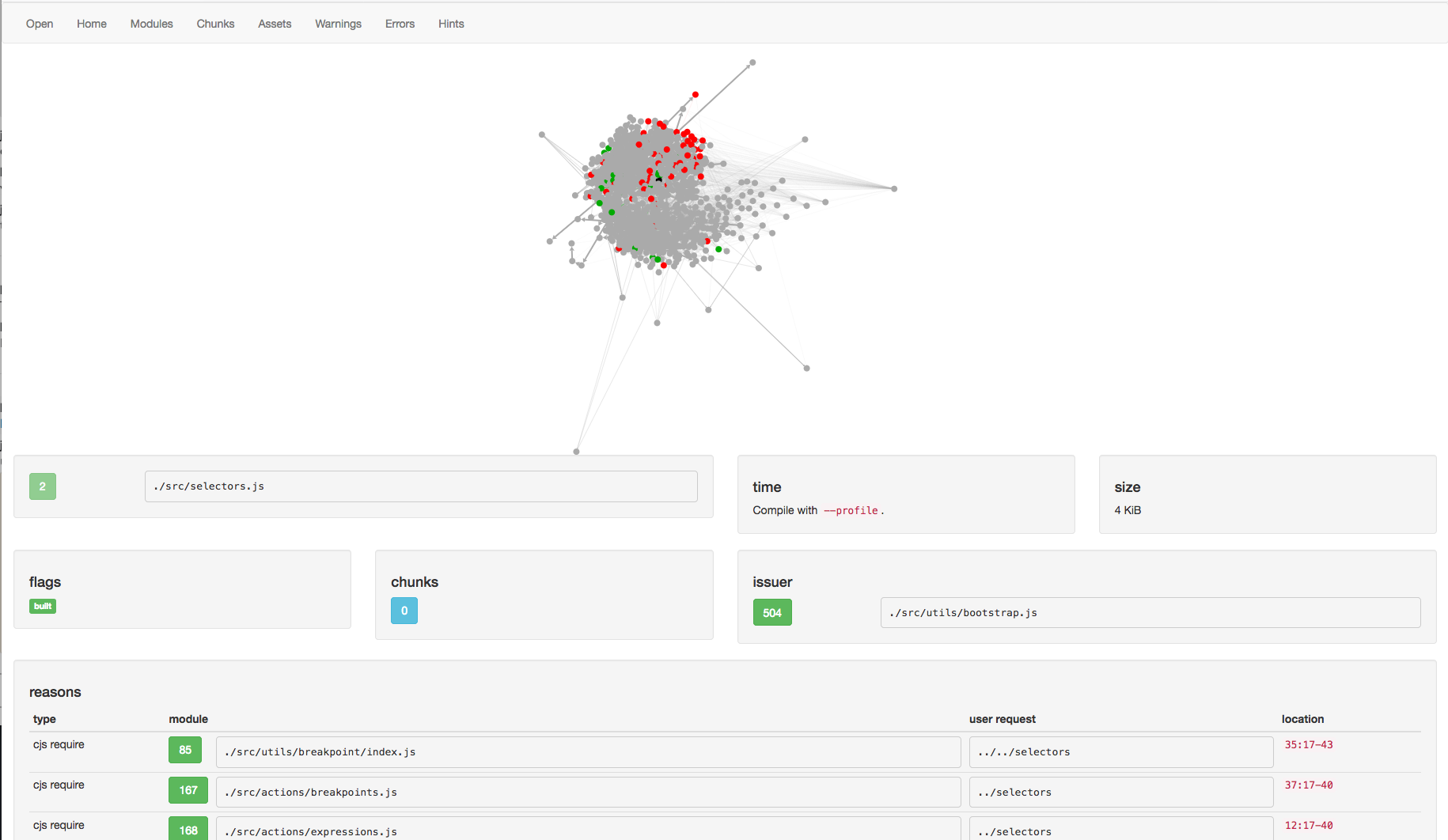 debuggeris often chunk0 - modules - Which modules appear. Which modules are the largest. Note, you are often looking at just the modules for chunk 0