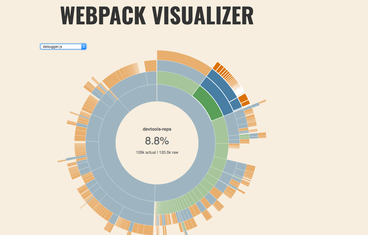 ]).map(r => r.join('\t'))The simplest way to see the size of the bundle, and which packages are taking up space is to look at the webpack visualizer.