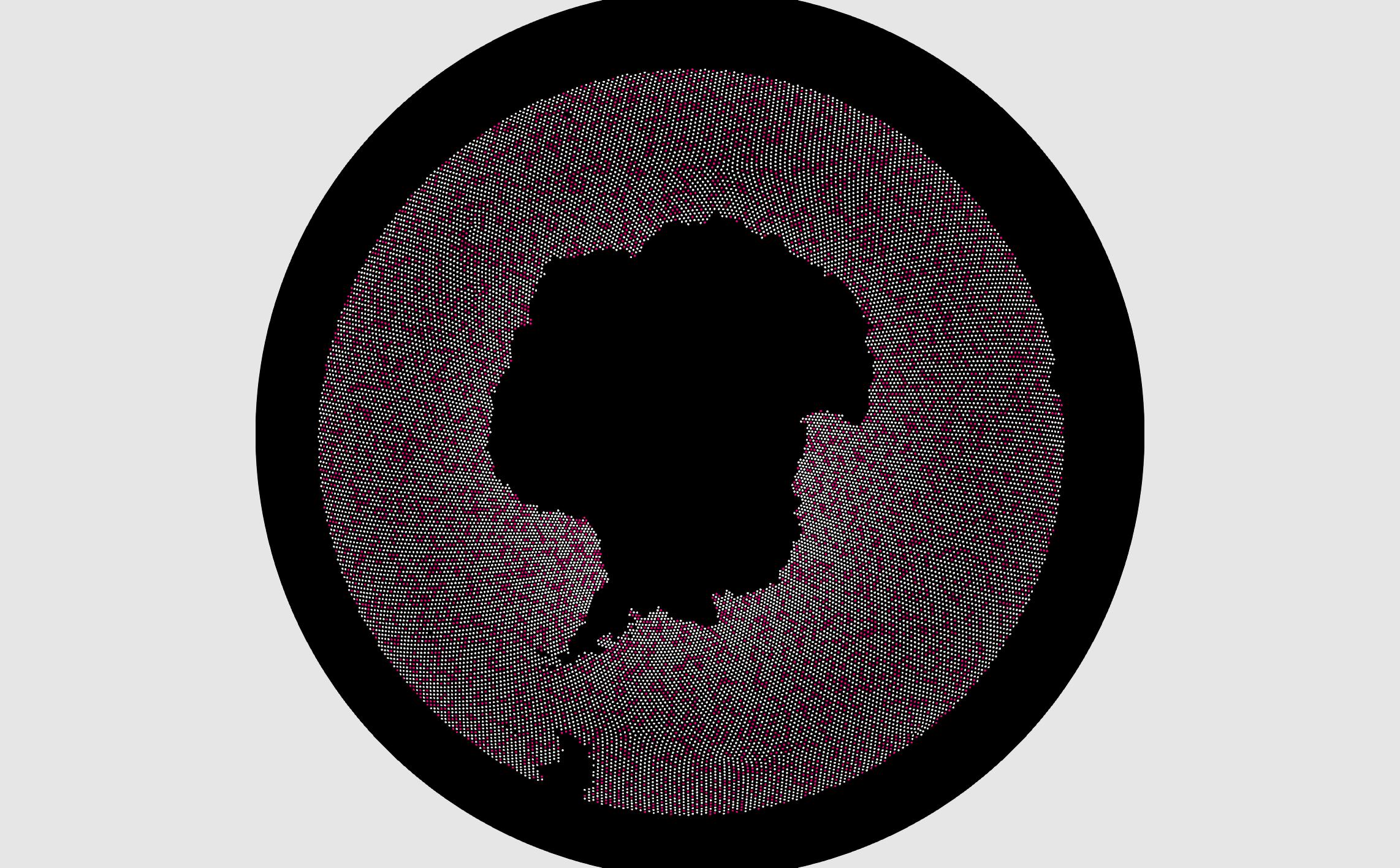 Here, white dots are seeding at every grid cell and red are after running my script: