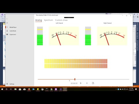 The AudioAnalyzer UWP extension DLL contains a MF component and companion XAML controls that can provide realtime audio analysis information for visualization and other purposes. The library contains prebuilt controls implementing VU meters, a spectrum analyzer as well as a control that has a custom draw capability. This project is a continuation of the work here and originally here.