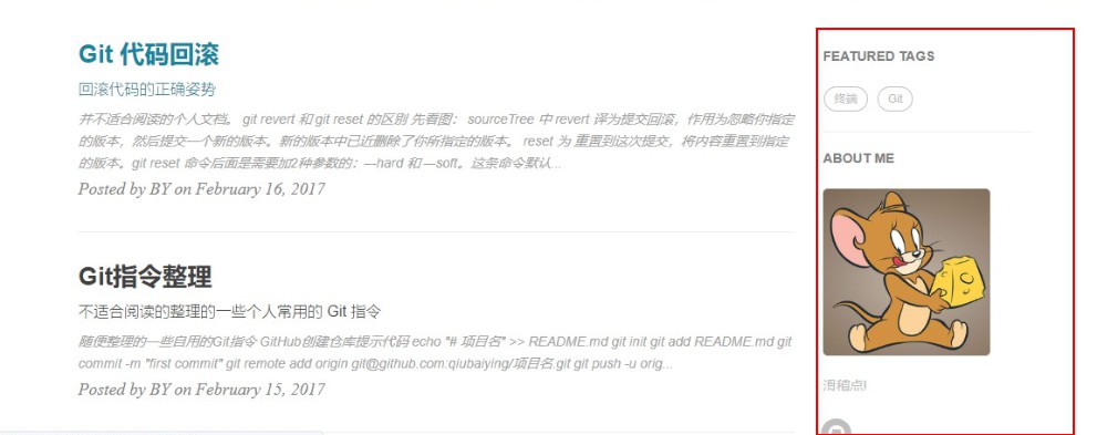 如果你可以理解 _include/ 和 _layouts/文件夹下的代码(这里是整个界面布局的地方),你就可以使用 Jekyll 使用的模版引擎 Liquid的语法直接修改/添加代码,来进行更有创意的自定义界面啦!
