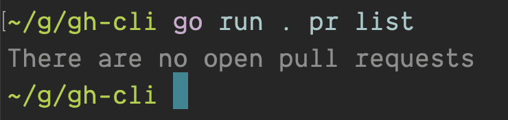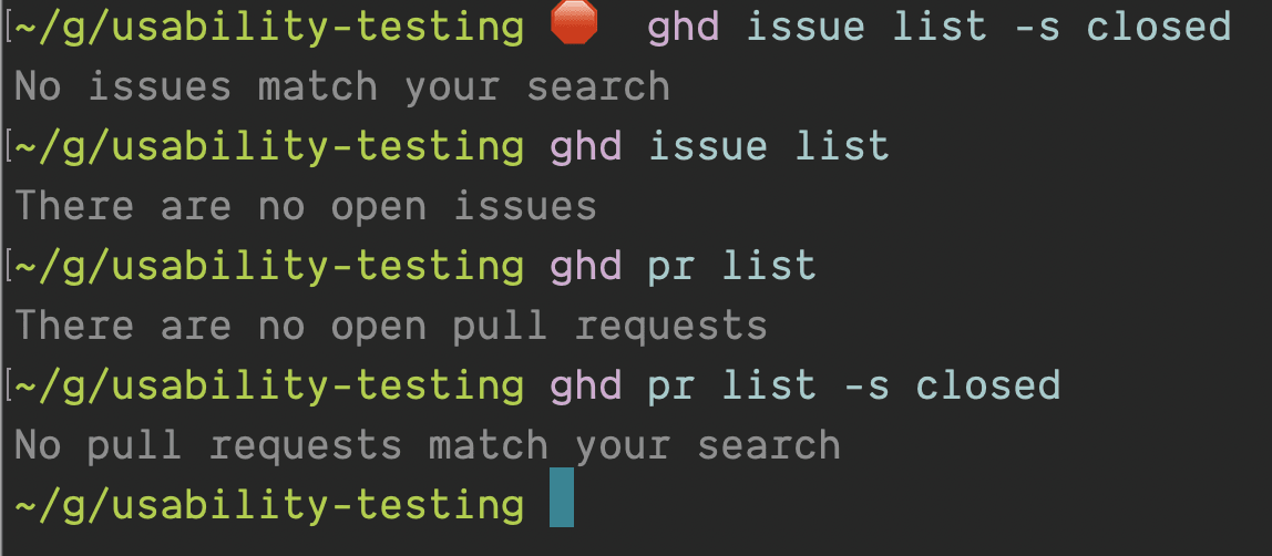 - No flags passed: “There are no open pull requests”