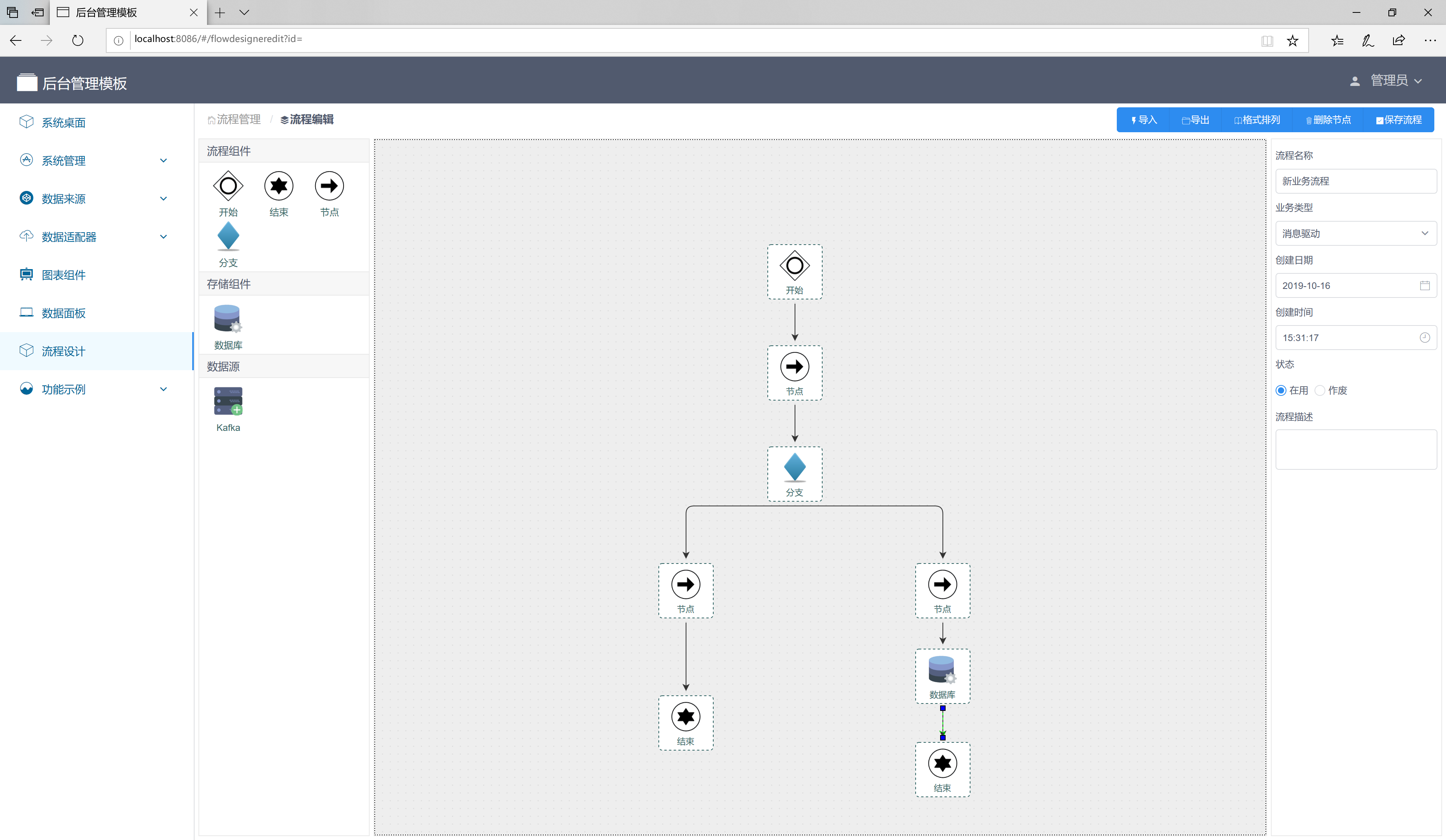 后台管理模板,拖拽式可视化界面设计,可视化流程设计