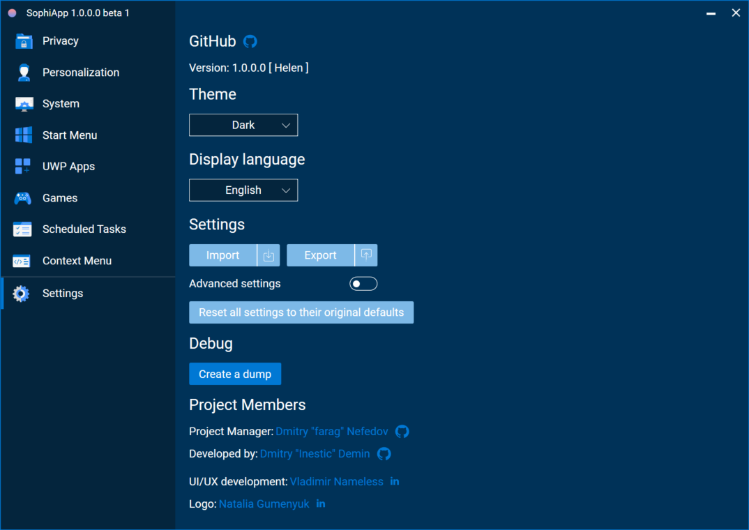 • Run SophiaScriptWrapper.exe and import Sophia.ps1;