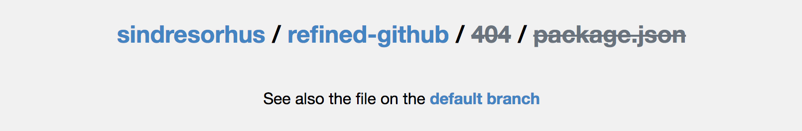 410 branch + file: https://github.com/sindresorhus/refined-github/blob/404/package.json