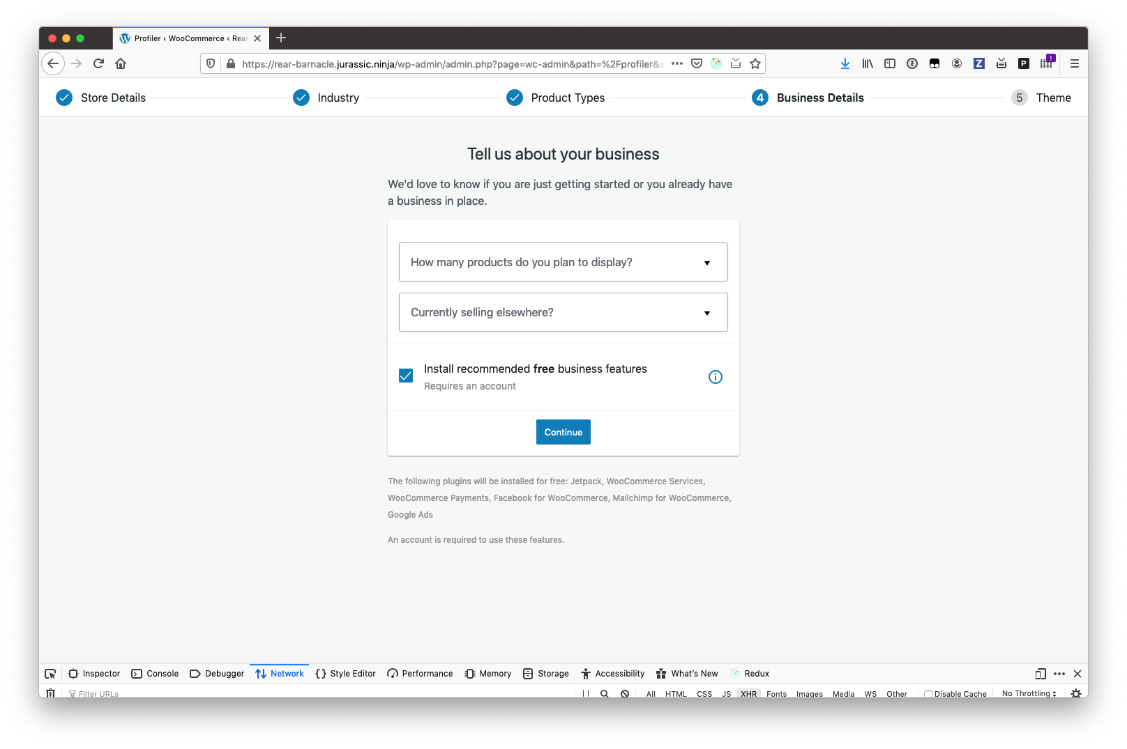 Using a new Jurassic Ninja site, go through the onboarding wizard.