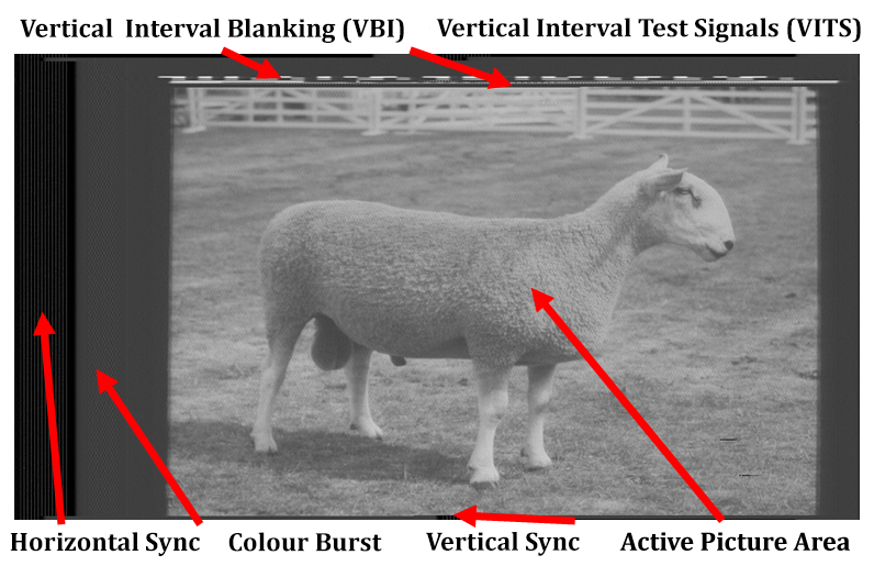 When ‘Source’ is selected the main window displays the raw frame data (which is grey-scale) including both visible and non-visible picture information: