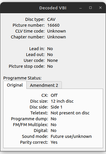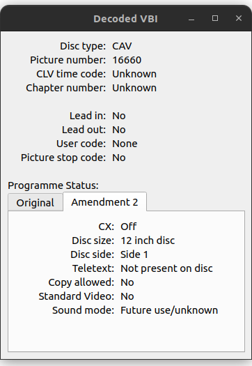 The amendment 2 tab shows the VBI according to the amendment 2 version of the LaserDisc specifications (and generally covers most LaserDiscs).