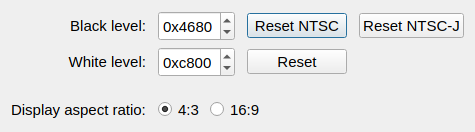 The ‘Reset’ buttons return the black or white level to their standard values. For NTSC video, there are two black level reset buttons, one for standard NTSC and one for the Japanese NTSC-J standard; if you selected the wrong NTSC variant when decoding the video, you can use this to switch between NTSC and NTSC-J.