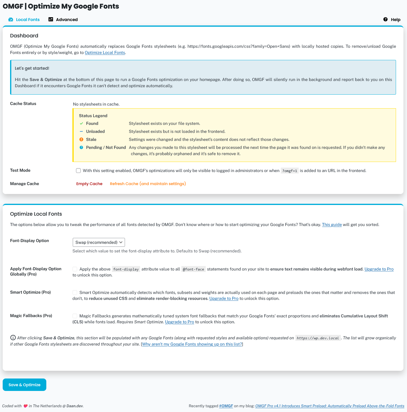 - Improved: Optimize Local Fonts section is now full width, like the Dashboard.