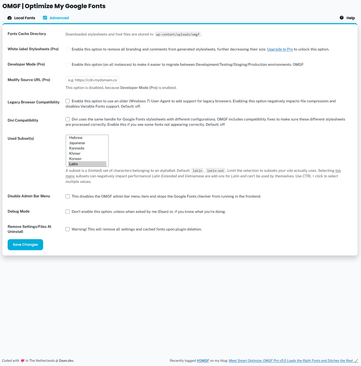 - All options, that’re not directly related to Locally Hosting Google Fonts but are directed more at optimization, are now moved to the Advanced Settings tab.