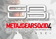 The Metal Gear Solid 4 Database is a downloadable application for the PlayStation 3. It takes the form of an encyclopedia, and catalogs every piece of Metal Gear in-game lore from all canonical entries in the series at the time of its release: Metal Gear, Metal Gear 2: Solid Snake, Metal Gear Solid, Metal Gear Solid 2: Sons of Liberty, Metal Gear Solid 3: Snake Eater, Metal Gear Solid: Portable Ops, and Metal Gear Solid 4: Guns of the Patriots.