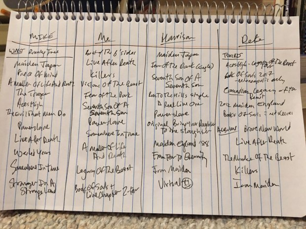 Thanks for watching, and if you just want to know what Maiden art we picked, check out Aaron’s hand-written list below! See ya next week!