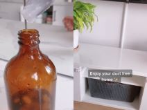 Uzmite sodu bikarbonu i pospite po svim delovima koji imaju fleke. Potom bočicu sa raspršivačem napunite belim sirćetom, razblaženim vodom. Poprskajte sva mesta na kojima se nalazi soda i ostavite da ostoji.