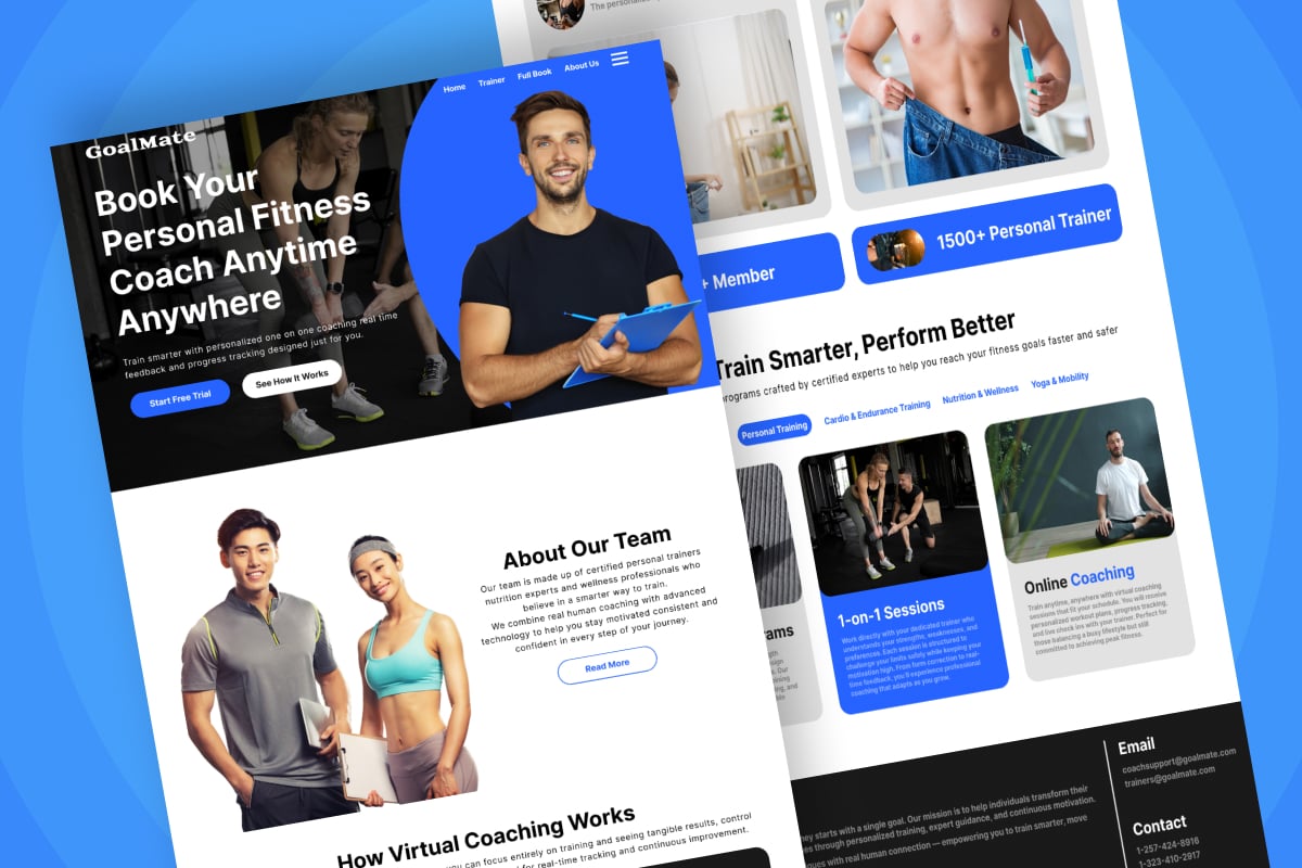 GoalMate is a polished landing solution built for online trainers and fitness brands who need fast lead capture and clear program presentation; it highlights coaching packages, social proof and instant booking to turn visitors into paying clients.