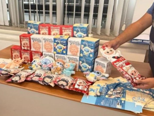 Tra gli oltre centomila articoli sequestrati dalla Guardia di finanza anche un centinaio di «Lafufu», ovvero imitazioni dell'originale pupazzo distribuito dalla catena di negozi cinese Pop Mart