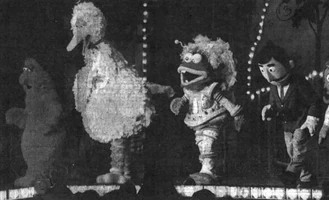 Big Bird, Tee-Hee, Grover, Bert, Ernie, Cookie Monster, The Count, Prairie Dawn, Oscar the Grouch, Guy Smiley, Telly Monster, Snuffleupagus, Gina and Tina (Twin Teenagers), Postman, Painter, Doctor, Handyman, Farmer