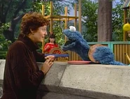 Susan Sarandon visits the street to see Cookie Monster and to learn to eat cookies like him. She provides a large cookie for him to demonstrate on, but advises him to break it in half so they both can have it. After her lesson, Cookie eats the plate.
