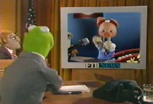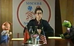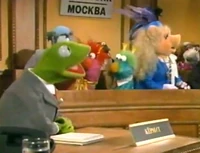 This is followed by "Pig to Frog," a segment where Kermit and his "distinguished" panel of Americans (including Miss Piggy, Meryl Sheep, the Honkers, a penguin and some Whatnots) talk to Khriusha and his panel of Russian characters while playing short films on the struggles of living in each country. The Russians' tape of American life stars a down on his luck bear (played by Kevin Clash).