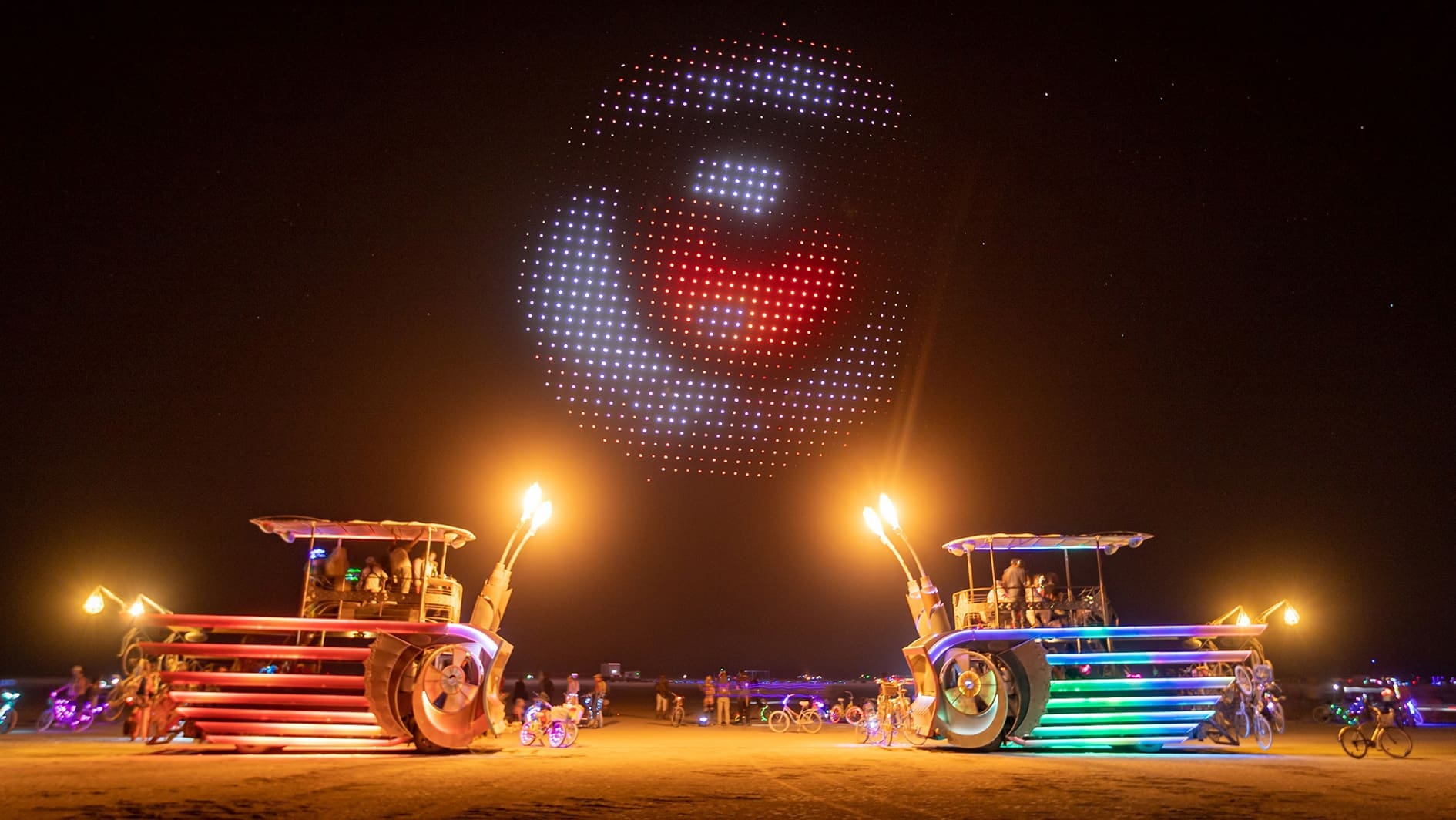 Nova drones fly multiple 1000 drone Sky Stories at Burning Man in Black Rock Desert in Nevada
