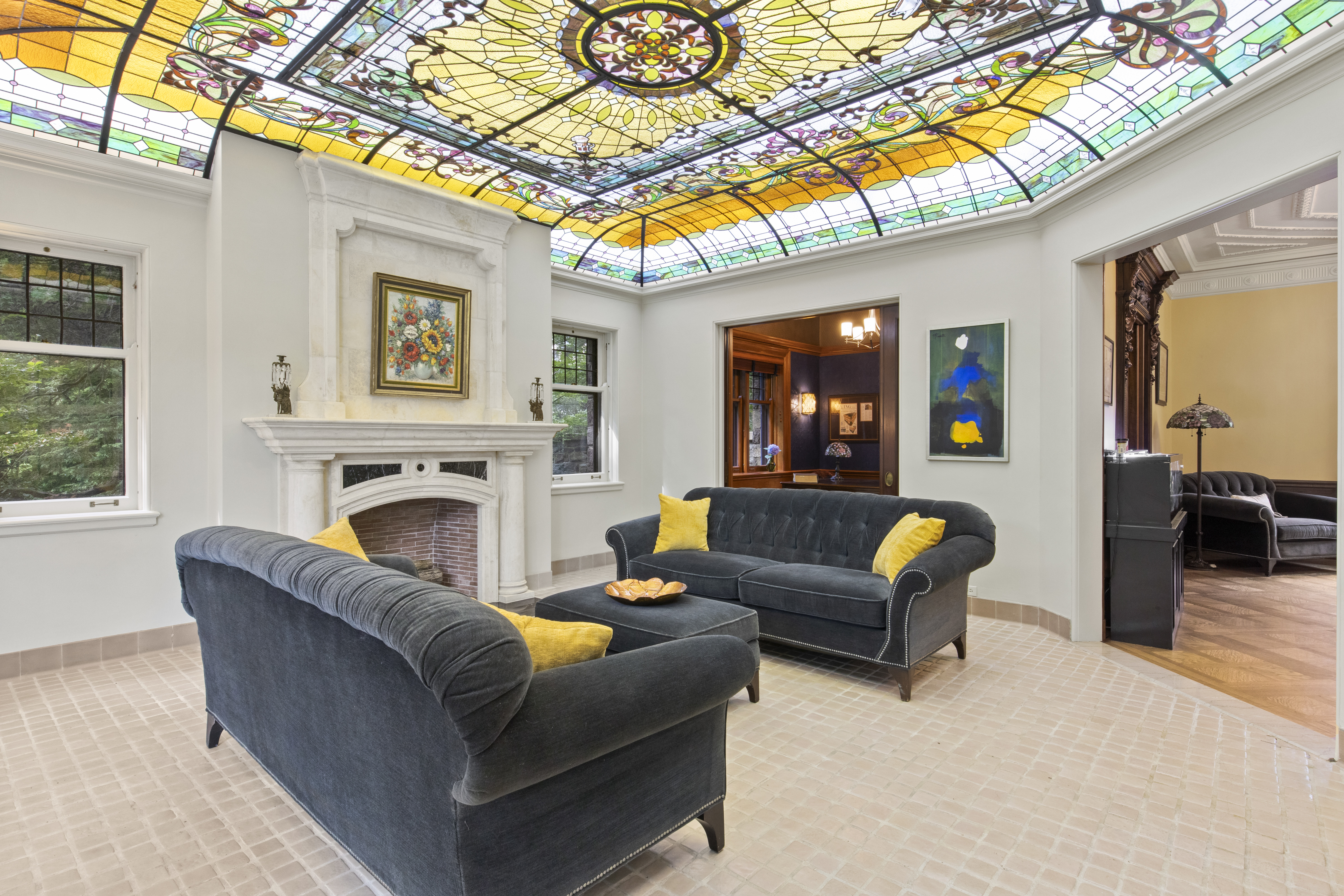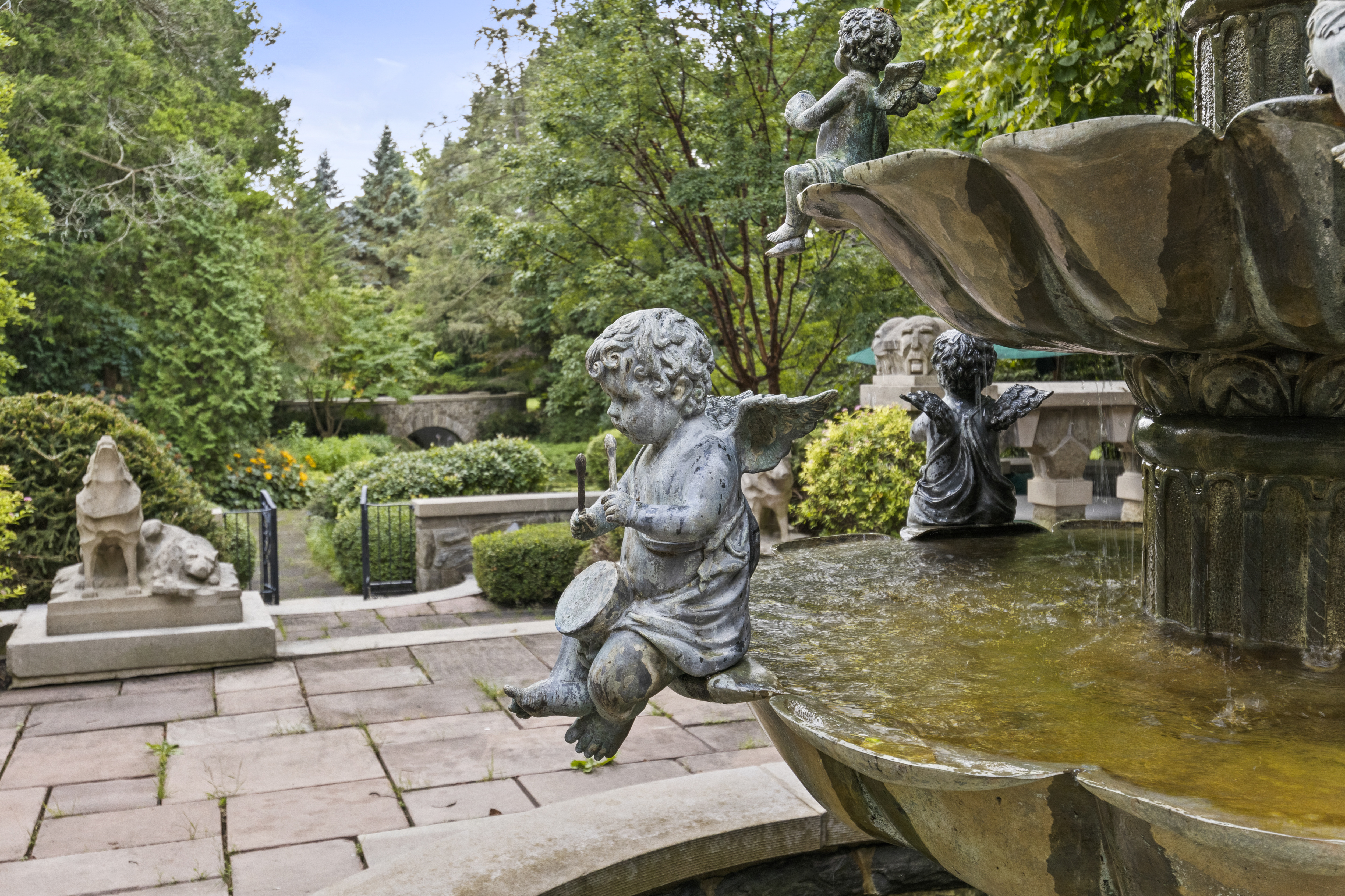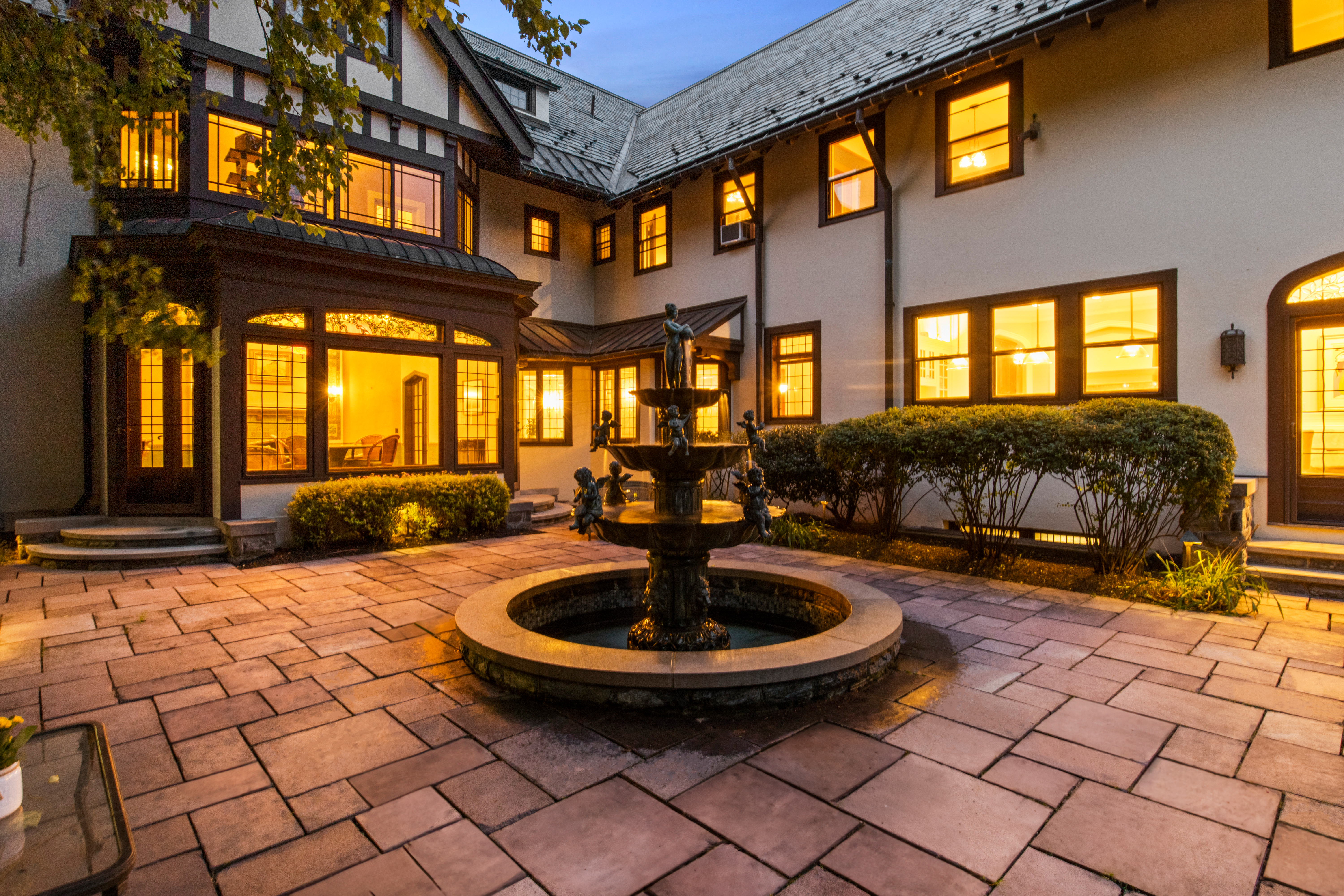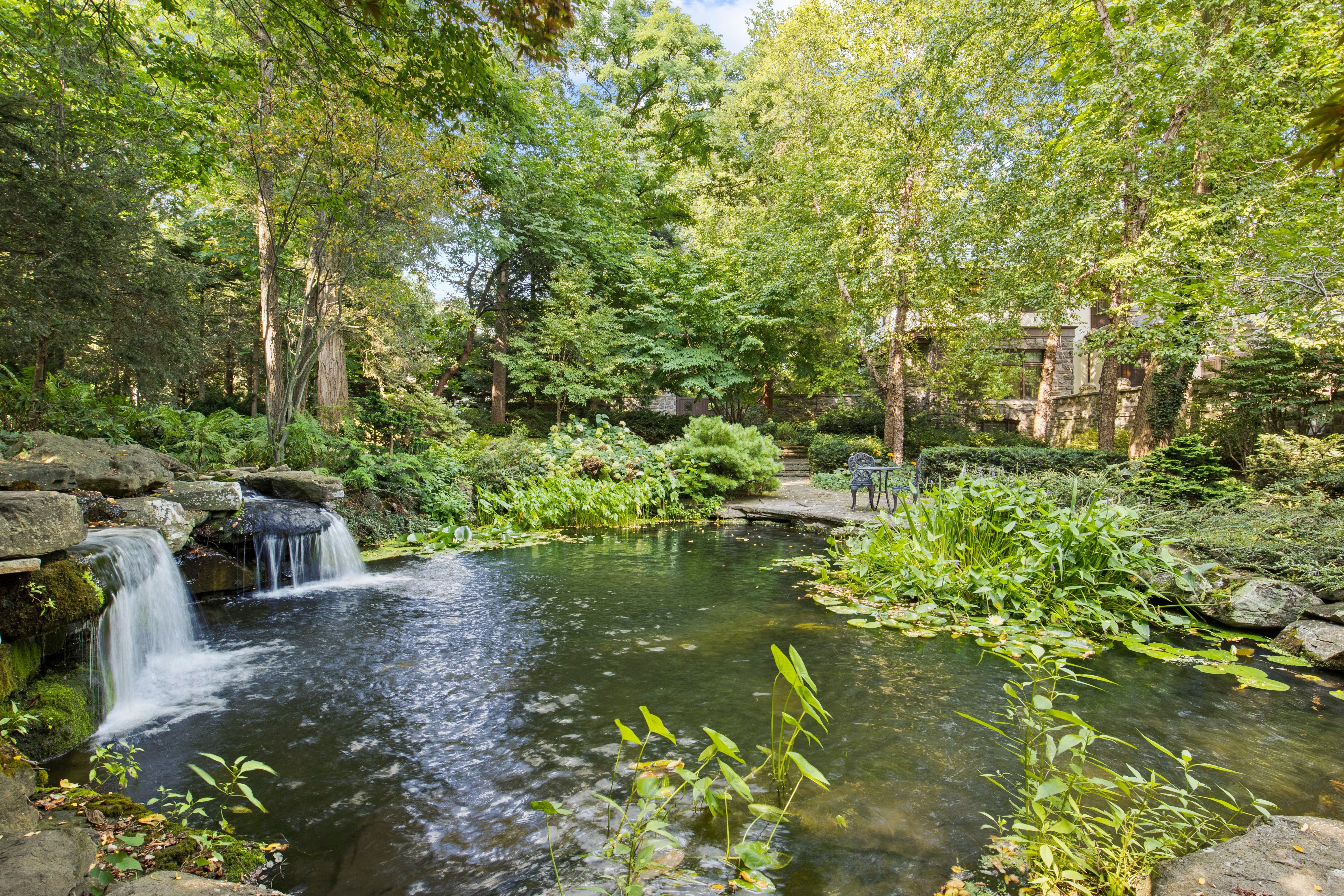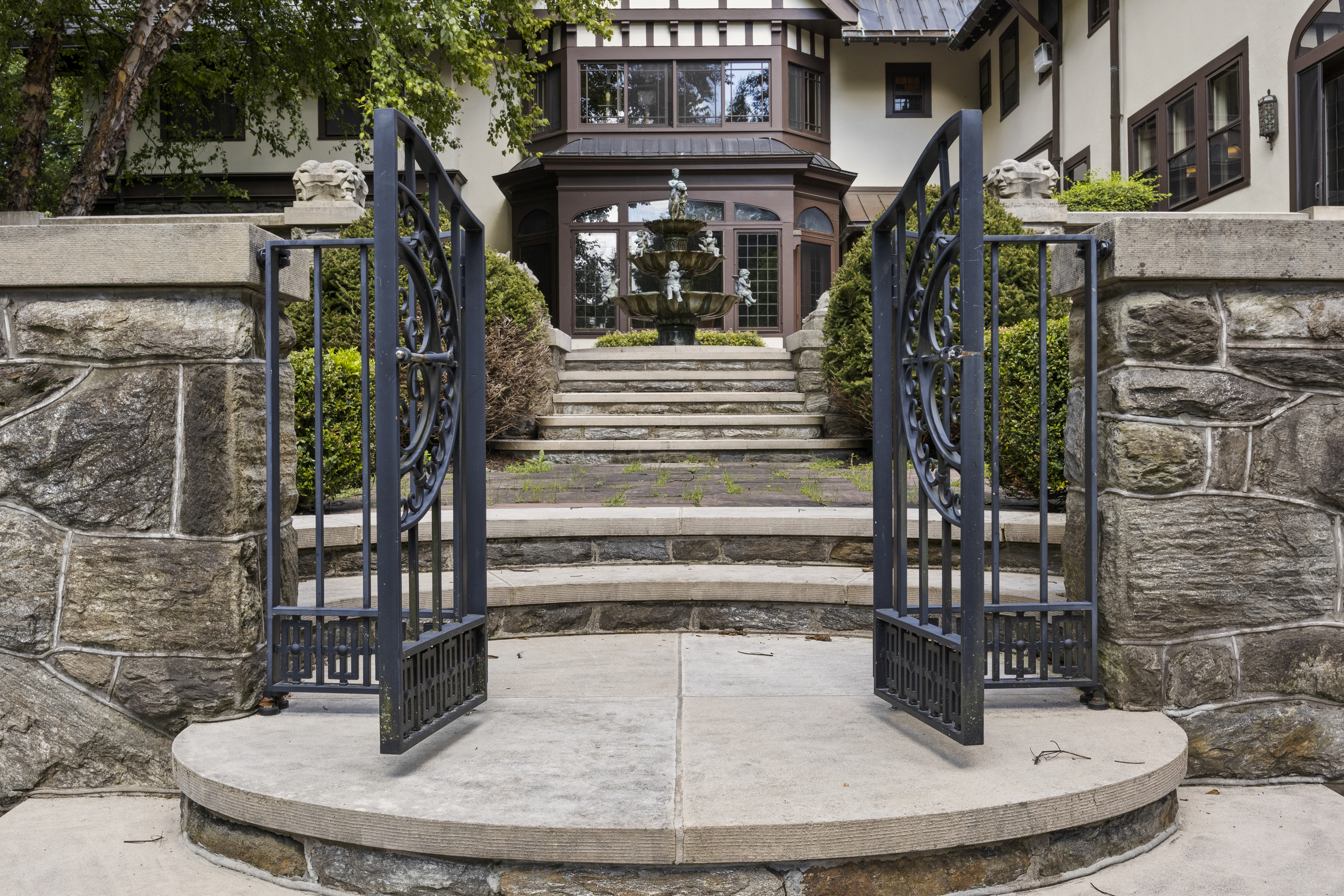 Welcome to “Twin Gables,” a rare opportunity to own one of Rochester’s most distinguished and historically significant estates. Built in 1912 for Anna Bausch Drescher—daughter of John Jacob Bausch, the esteemed co-founder of Bausch & Lomb—this palatial nine bedroom, seven bathroom residence has been meticulously restored with over 6 million dollars in enhancements. Nestled on three private, landscaped acres adorned with award-winning gardens, koi ponds, and serene waterfalls, this 8,118 sq ft masterpiece offers exceptional privacy and timeless grandeur. Inside, refined luxury meets historic craftsmanship. Elegant living spaces, an exquisite stained-glass conservatory, and a grand ballroom set the tone. The chef’s kitchen features a six burner/grill Viking range with double ovens, warming oven, breakfast bar, and glass display nooks. The sunroom dazzles with a Valerie O’Hara/Pike’s trans-illumination leaded glass ceiling and original tile flooring. A 2,500-bottle wine cellar, climate controlled for temperature and humidity, is hidden behind a custom-painted bank vault door. The carriage house includes a living room, kitchen, dining area, breakfast bar, leaded glass, built-ins, instant-on lighting, its own washer/dryer, and hot water heater. Additional amenities include a heated driveway from carport to garage, an elevator, and unmatched privacy in the heart of Rochester. Note that the 1,098 sq ft in-law carriage house connecting the apartment to the house has since been added for a total of 9,318 sq ft compared to the current tax record total of 8,118 sq ft.