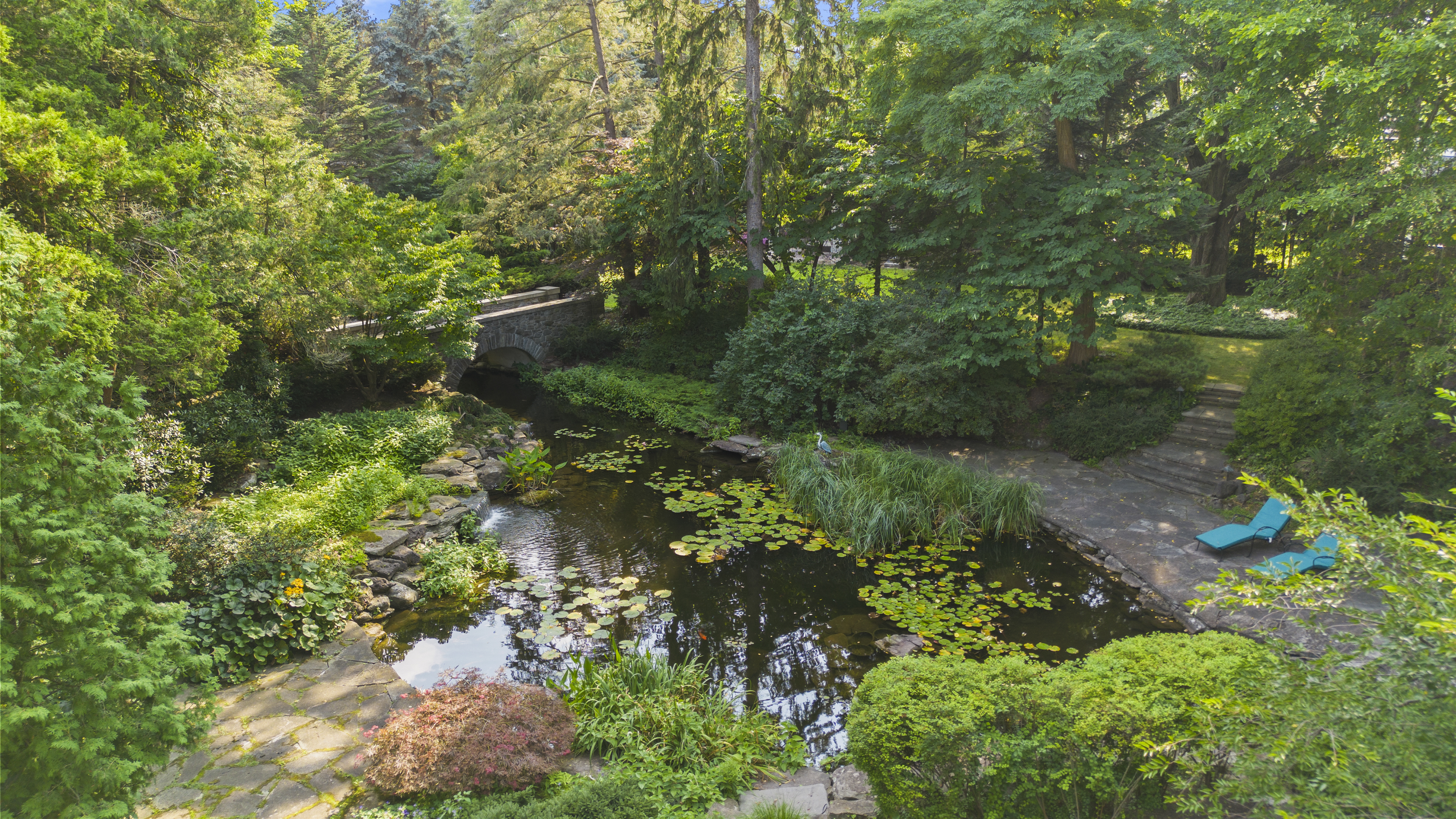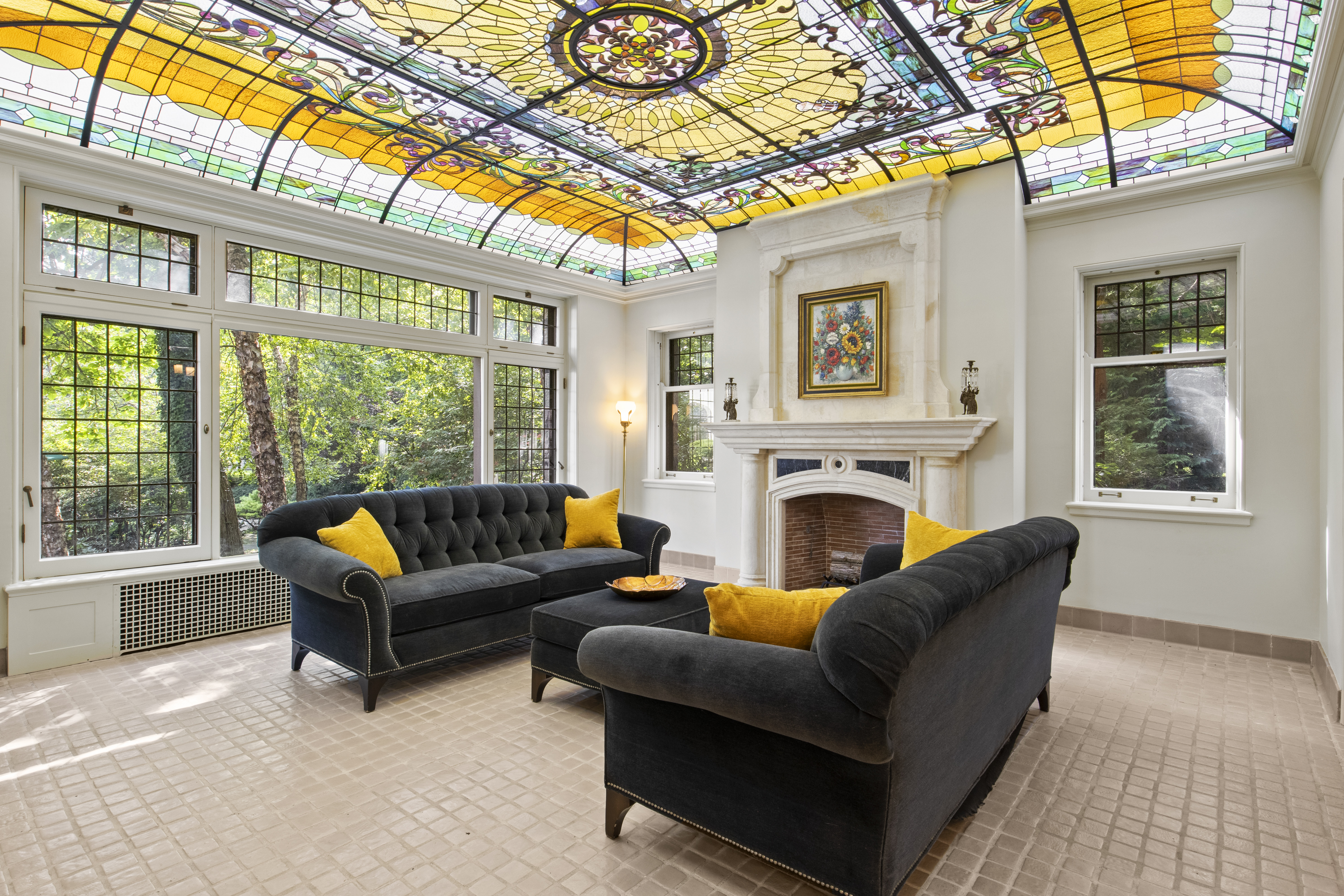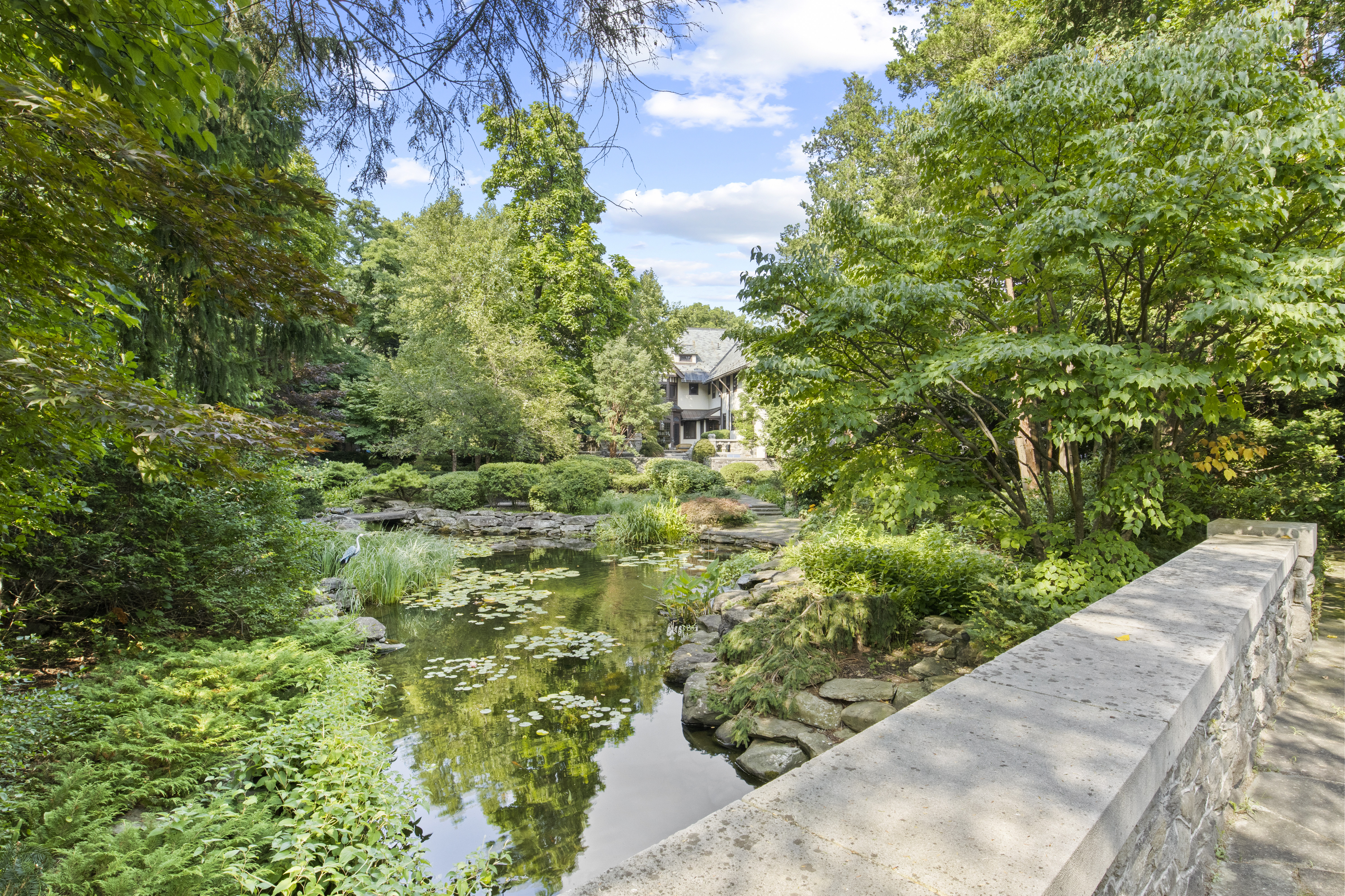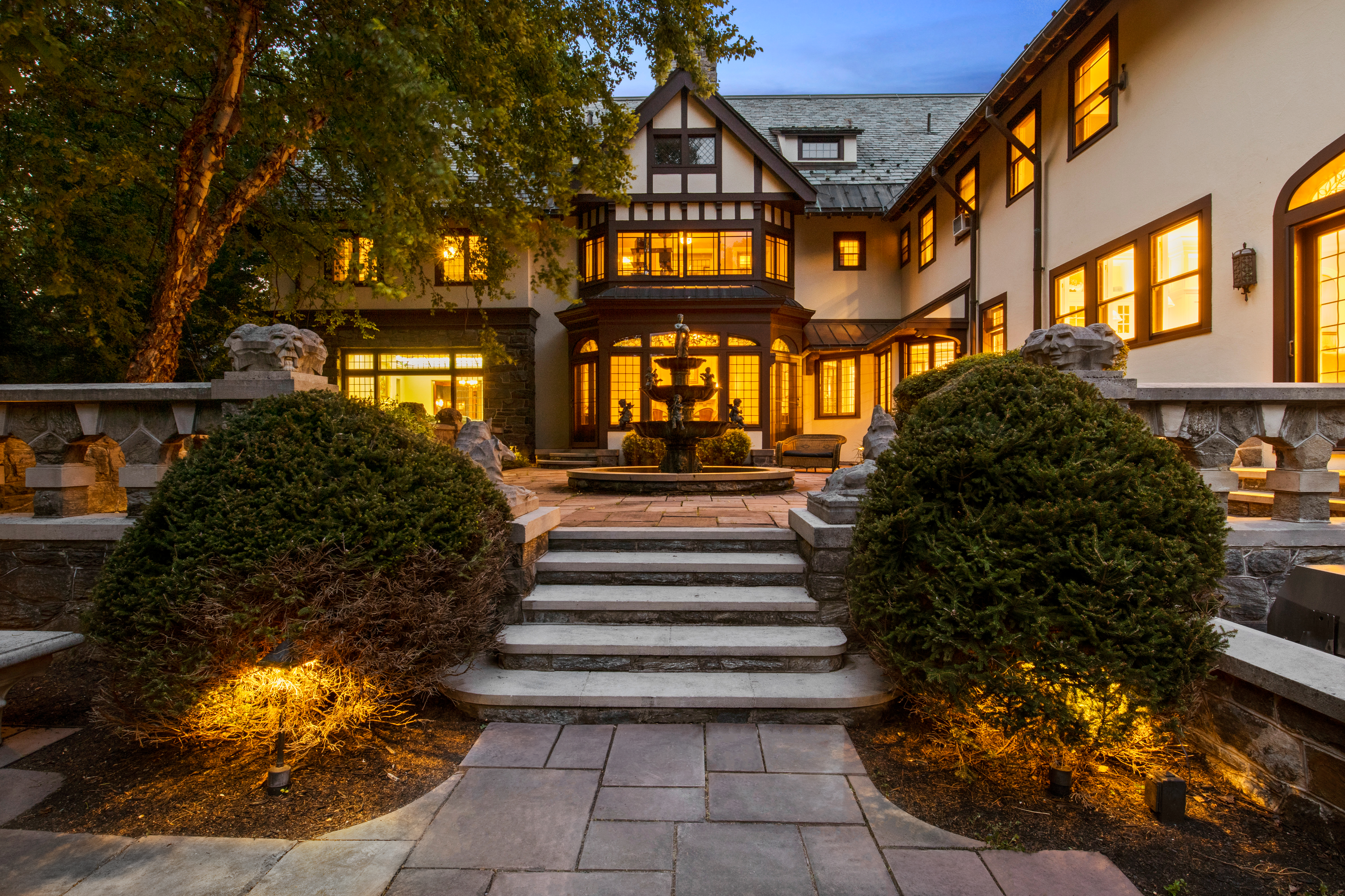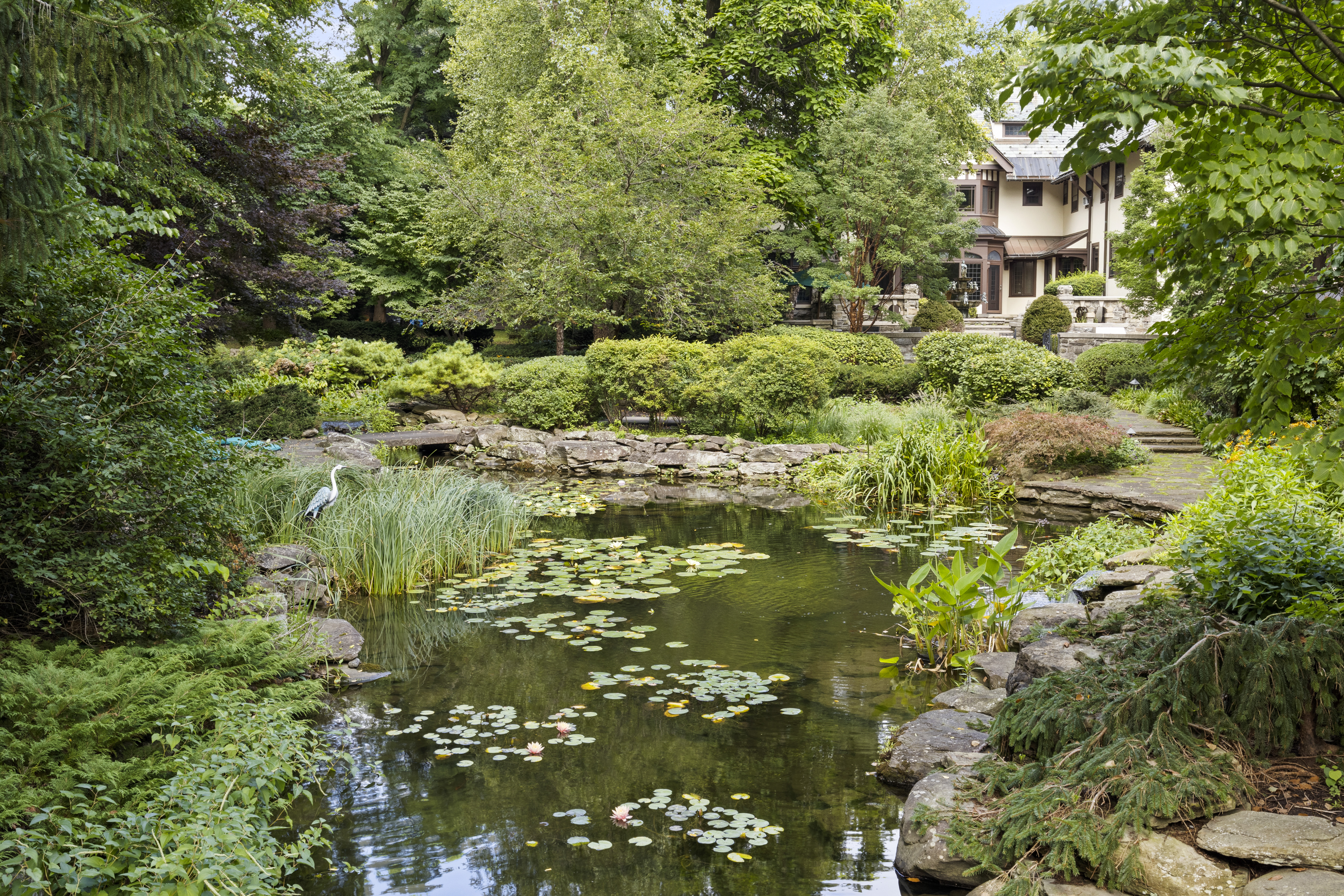 Welcome to “Twin Gables,” a rare opportunity to own one of Rochester’s most distinguished and historically significant estates. Built in 1912 for Anna Bausch Drescher—daughter of John Jacob Bausch, the esteemed co-founder of Bausch & Lomb—this palatial nine bedroom, seven bathroom residence has been meticulously restored with over 6 million dollars in enhancements. Nestled on three private, landscaped acres adorned with award-winning gardens, koi ponds, and serene waterfalls, this 8,118 sq ft masterpiece offers exceptional privacy and timeless grandeur. Inside, refined luxury meets historic craftsmanship. Elegant living spaces, an exquisite stained-glass conservatory, and a grand ballroom set the tone. The chef’s kitchen features a six burner/grill Viking range with double ovens, warming oven, breakfast bar, and glass display nooks. The sunroom dazzles with a Valerie O’Hara/Pike’s trans-illumination leaded glass ceiling and original tile flooring. A 2,500-bottle wine cellar, climate controlled for temperature and humidity, is hidden behind a custom-painted bank vault door. The carriage house includes a living room, kitchen, dining area, breakfast bar, leaded glass, built-ins, instant-on lighting, its own washer/dryer, and hot water heater. Additional amenities include a heated driveway from carport to garage, an elevator, and unmatched privacy in the heart of Rochester. Note that the 1,098 sq ft in-law carriage house connecting the apartment to the house has since been added for a total of 9,318 sq ft compared to the current tax record total of 8,118 sq ft.