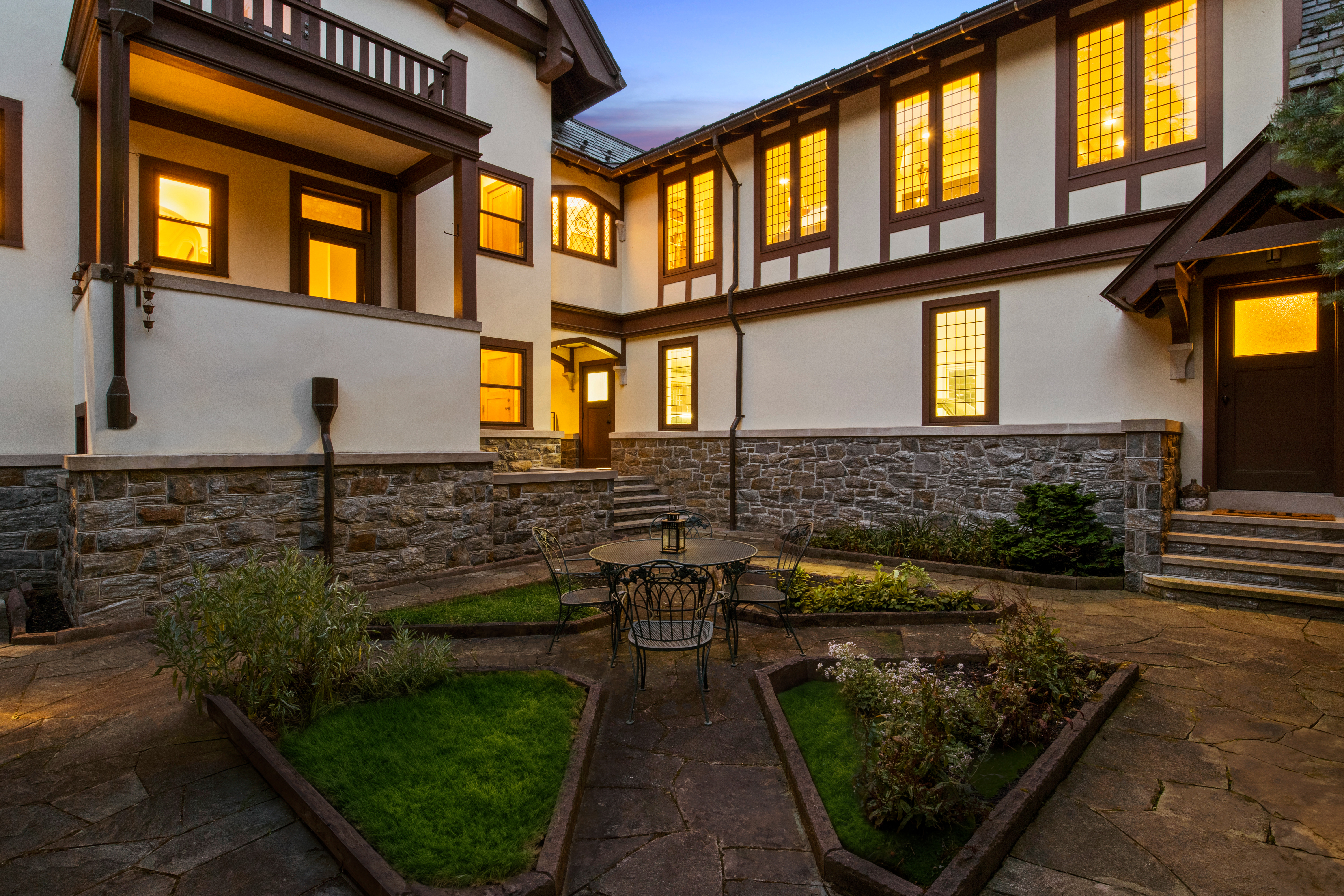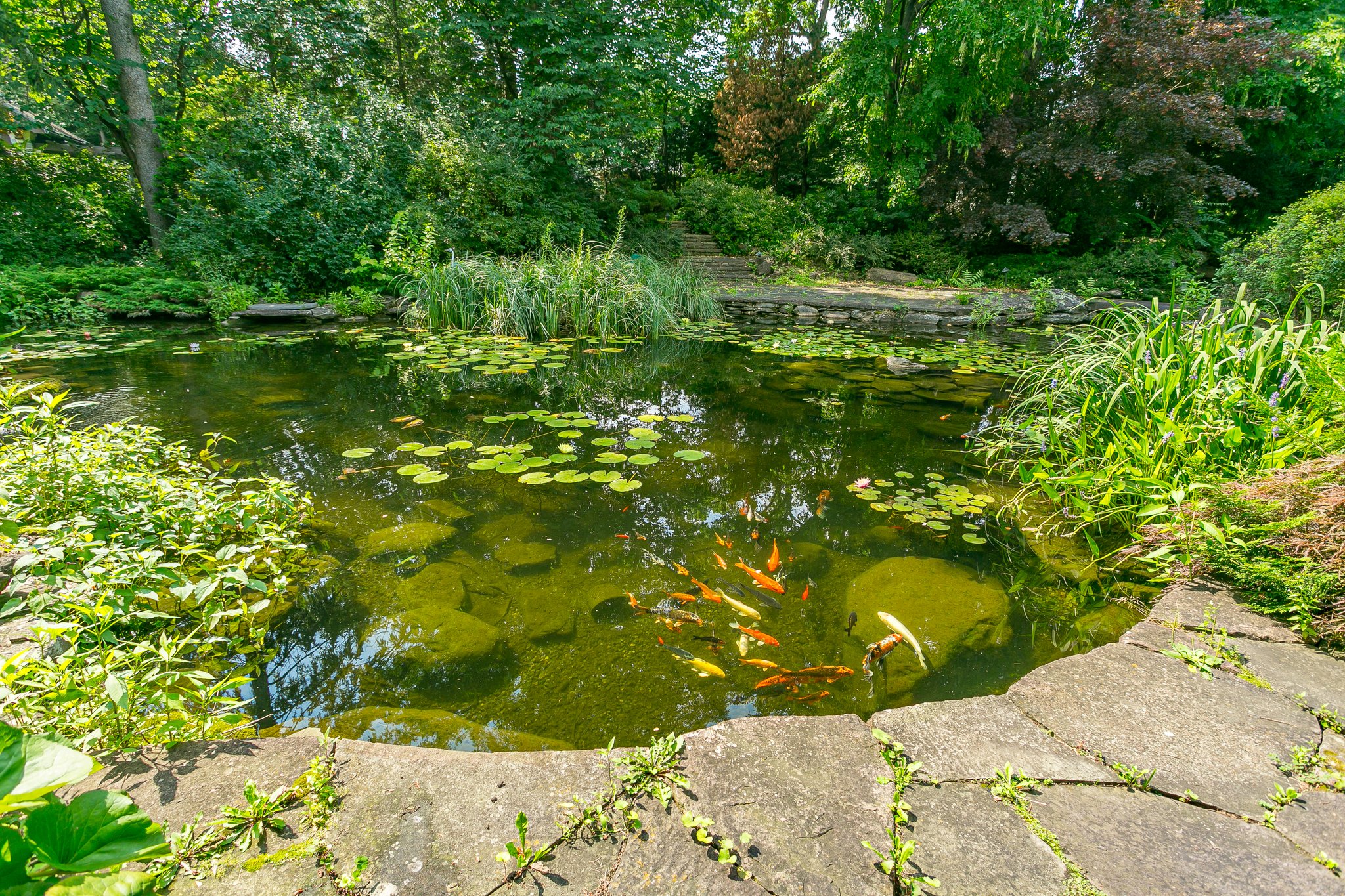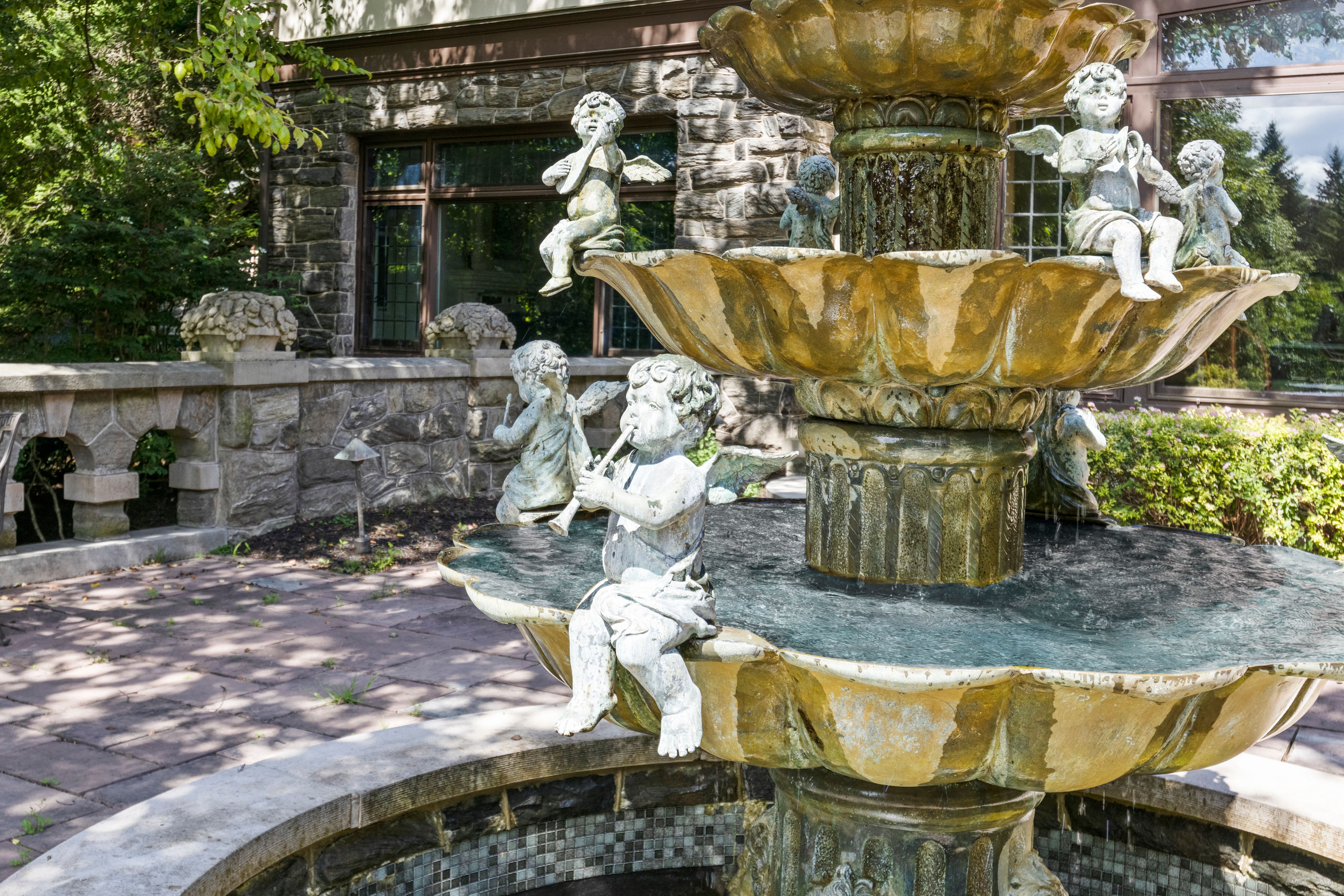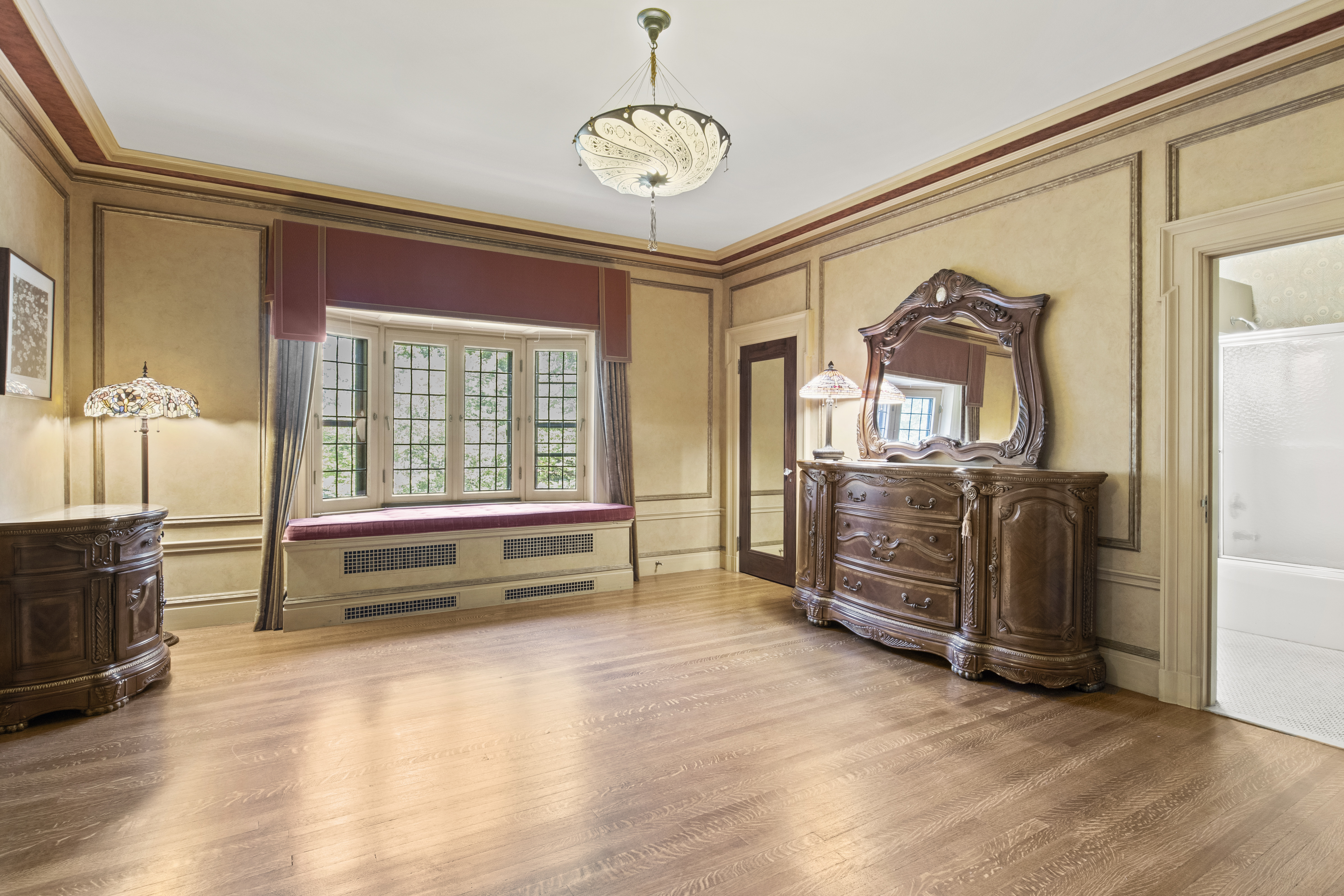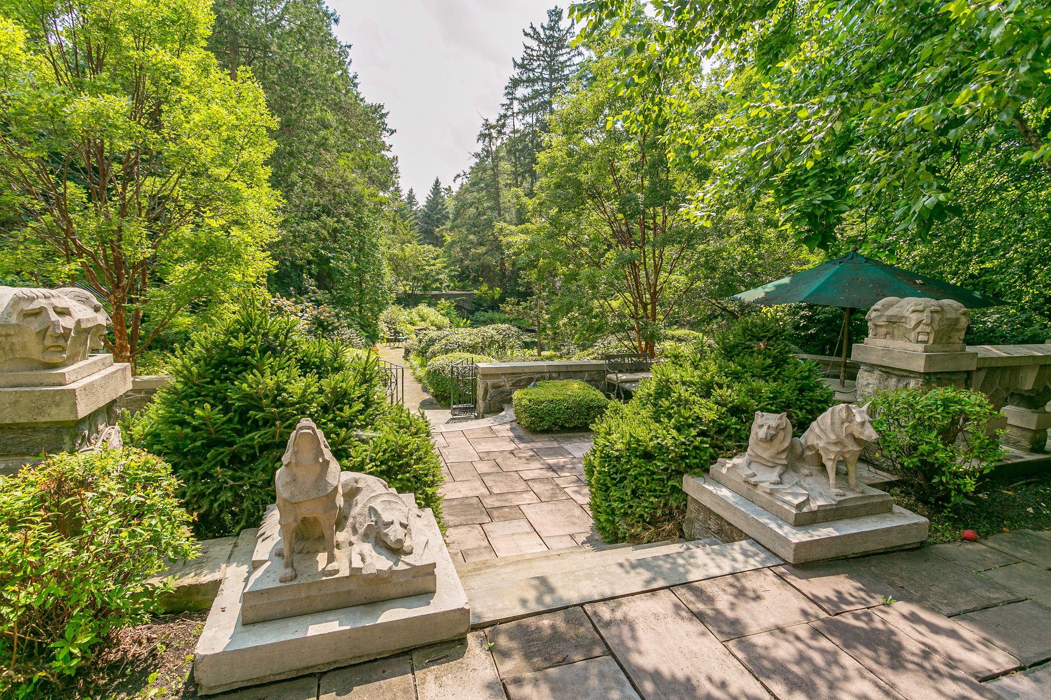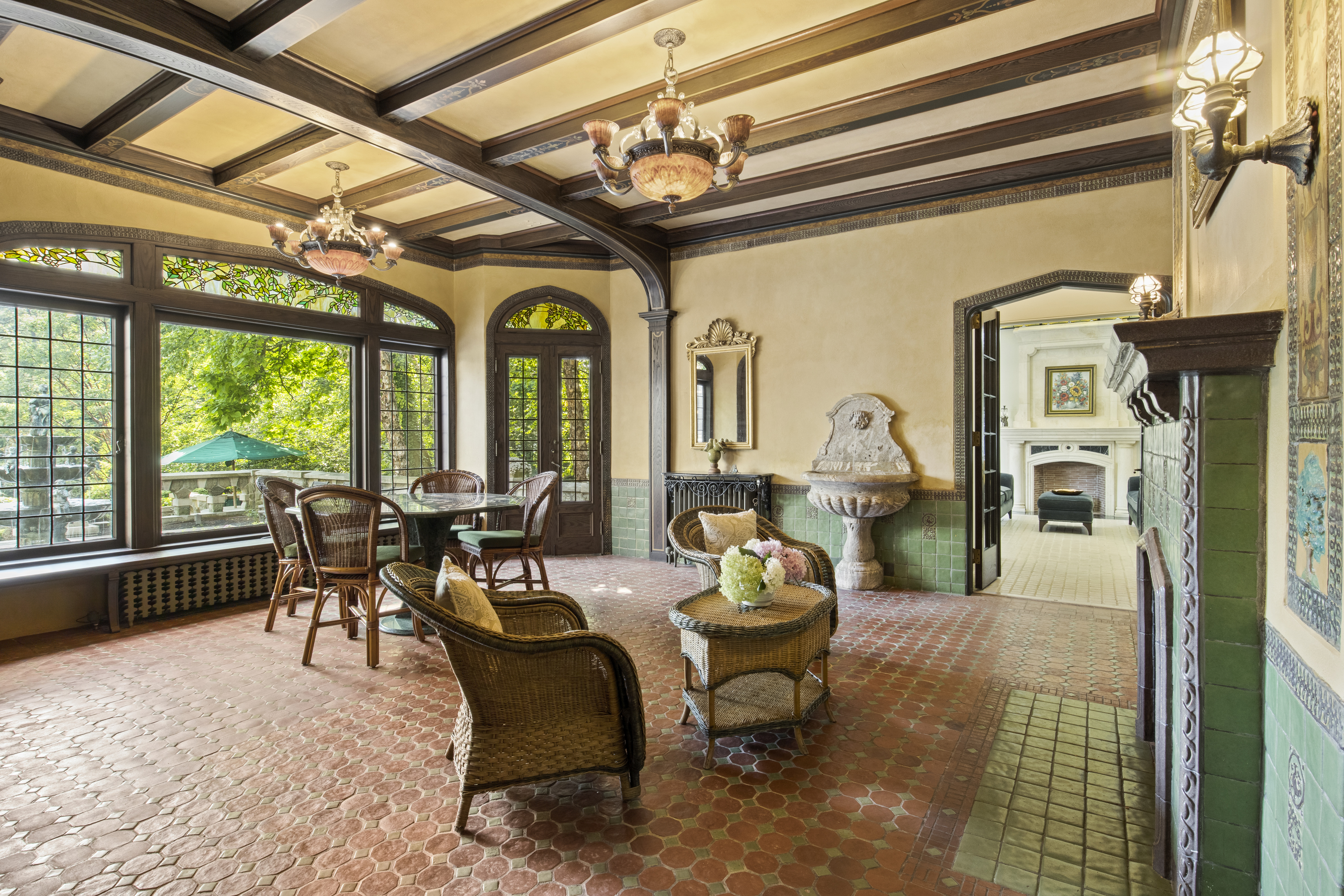 Welcome to “Twin Gables,” a rare opportunity to own one of Rochester’s most distinguished and historically significant estates. Built in 1912 for Anna Bausch Drescher—daughter of John Jacob Bausch, the esteemed co-founder of Bausch & Lomb—this palatial nine bedroom, seven bathroom residence has been meticulously restored with over 6 million dollars in enhancements. Nestled on three private, landscaped acres adorned with award-winning gardens, koi ponds, and serene waterfalls, this 8,118 sq ft masterpiece offers exceptional privacy and timeless grandeur. Inside, refined luxury meets historic craftsmanship. Elegant living spaces, an exquisite stained-glass conservatory, and a grand ballroom set the tone. The chef’s kitchen features a six burner/grill Viking range with double ovens, warming oven, breakfast bar, and glass display nooks. The sunroom dazzles with a Valerie O’Hara/Pike’s trans-illumination leaded glass ceiling and original tile flooring. A 2,500-bottle wine cellar, climate controlled for temperature and humidity, is hidden behind a custom-painted bank vault door. The carriage house includes a living room, kitchen, dining area, breakfast bar, leaded glass, built-ins, instant-on lighting, its own washer/dryer, and hot water heater. Additional amenities include a heated driveway from carport to garage, an elevator, and unmatched privacy in the heart of Rochester. Note that the 1,098 sq ft in-law carriage house connecting the apartment to the house has since been added for a total of 9,318 sq ft compared to the current tax record total of 8,118 sq ft.