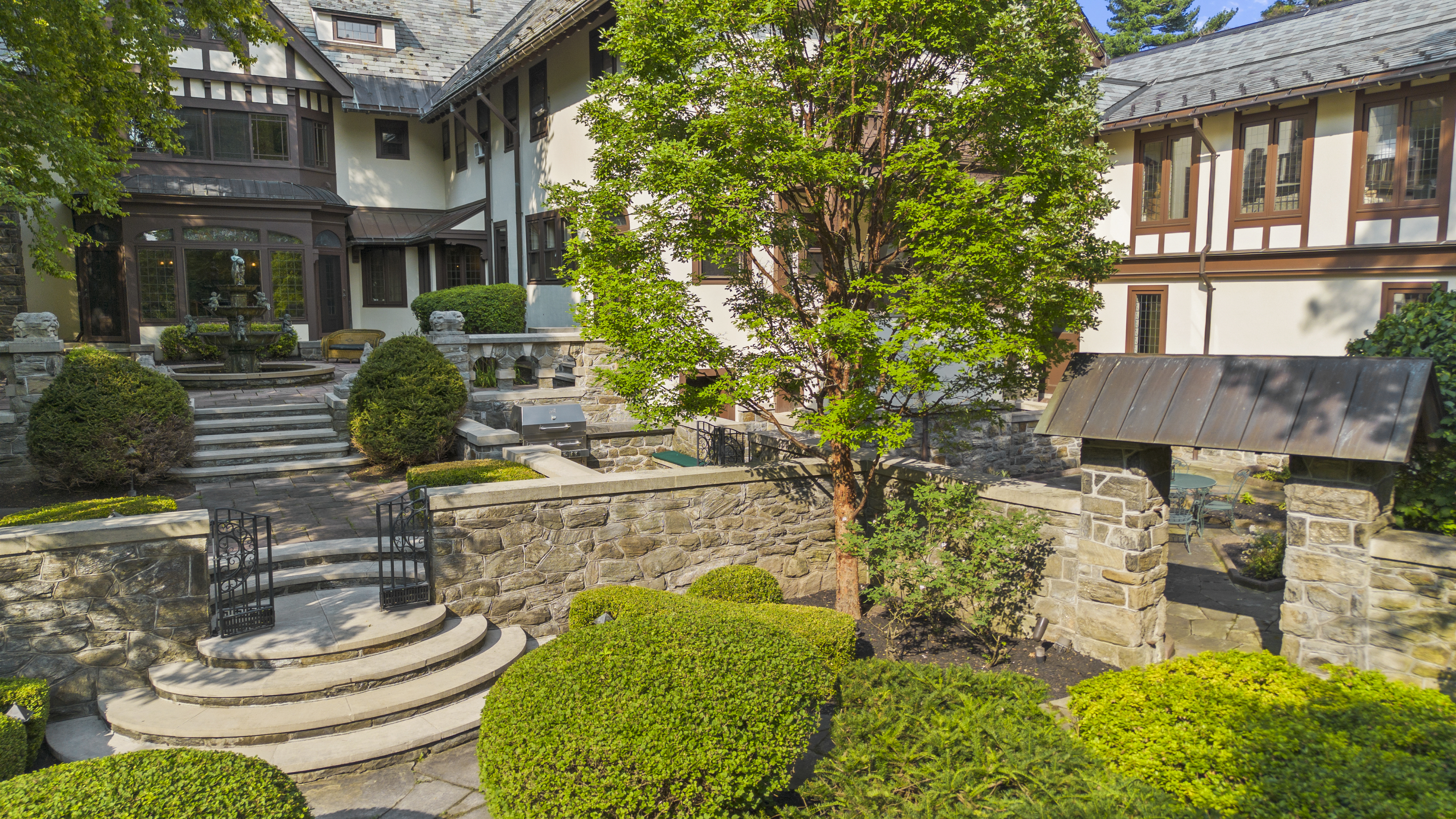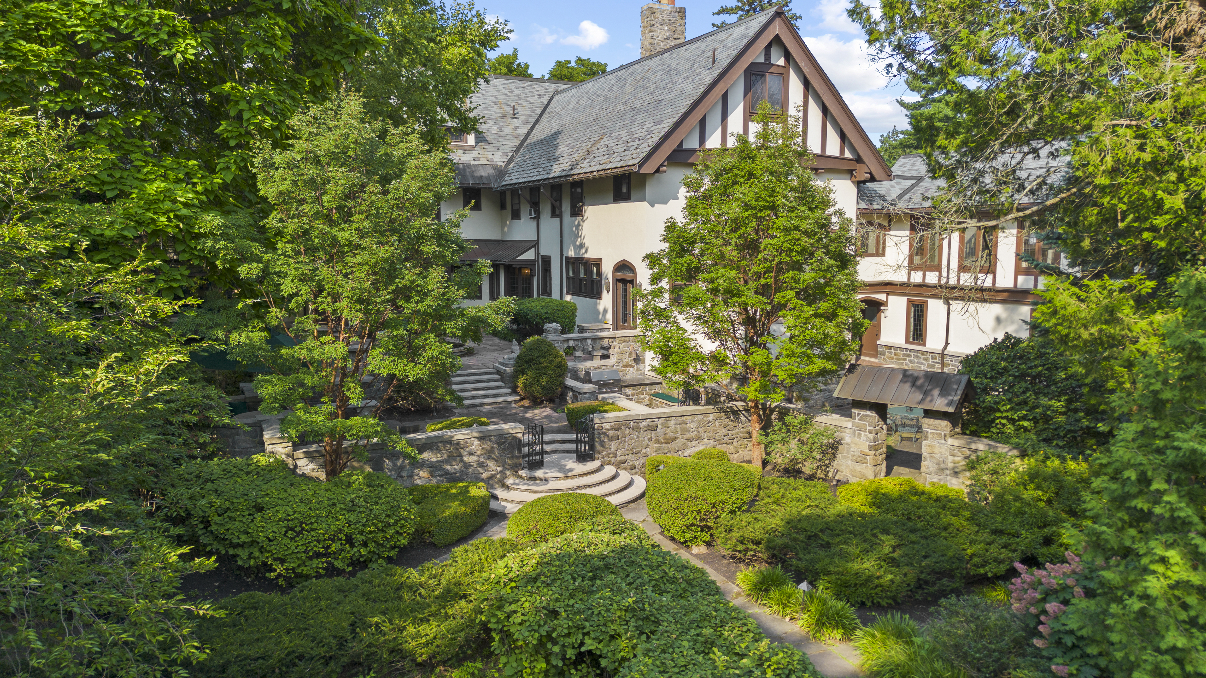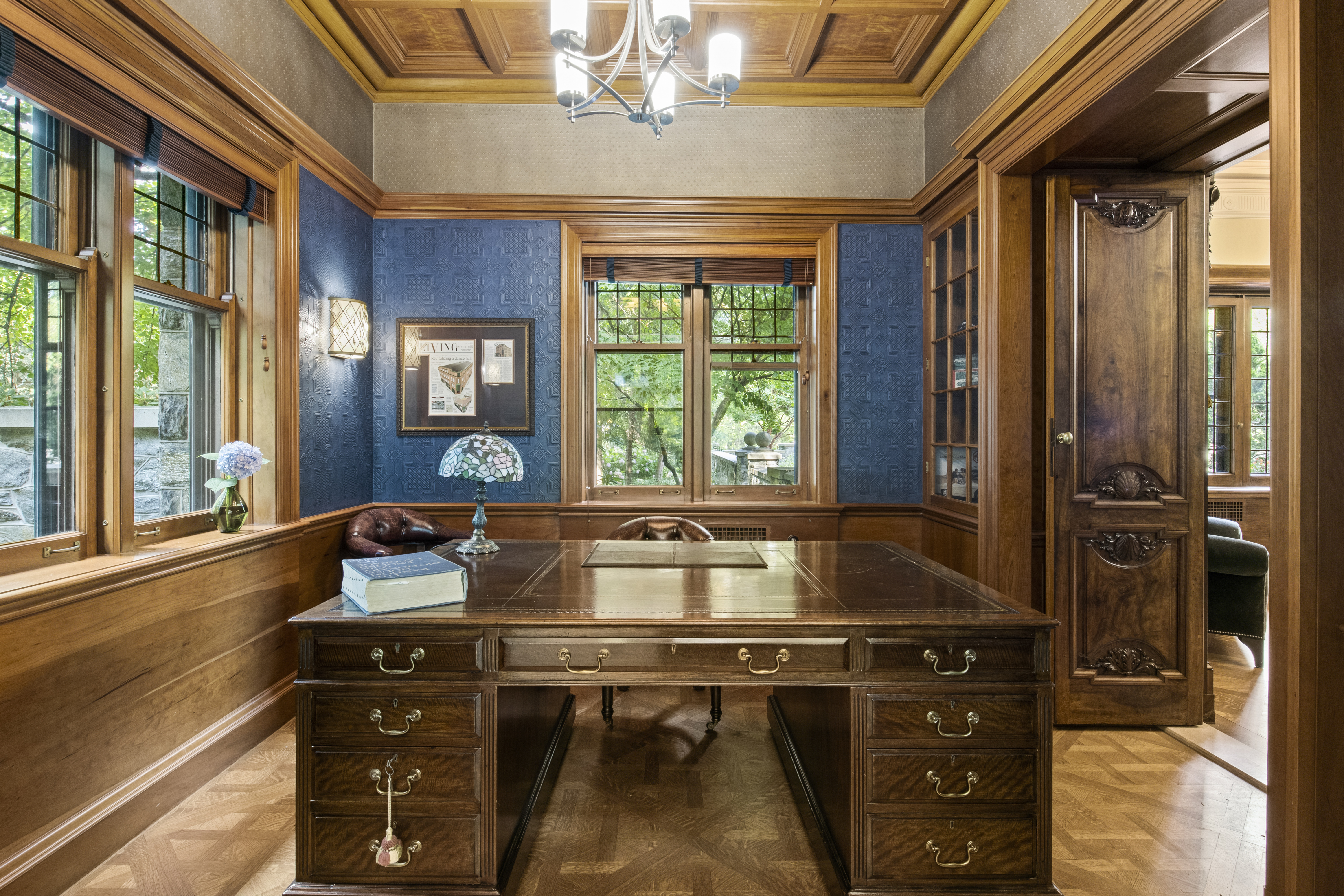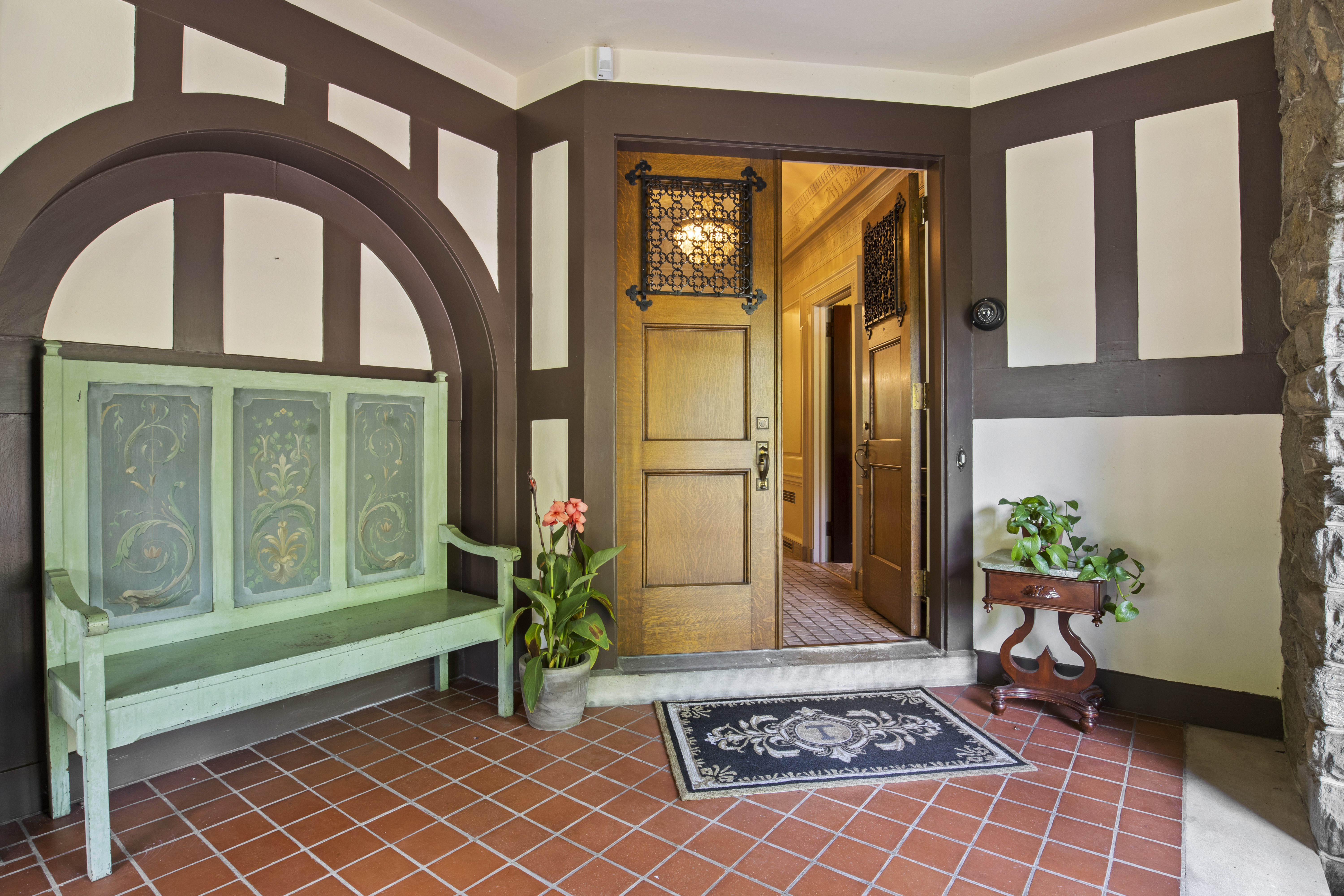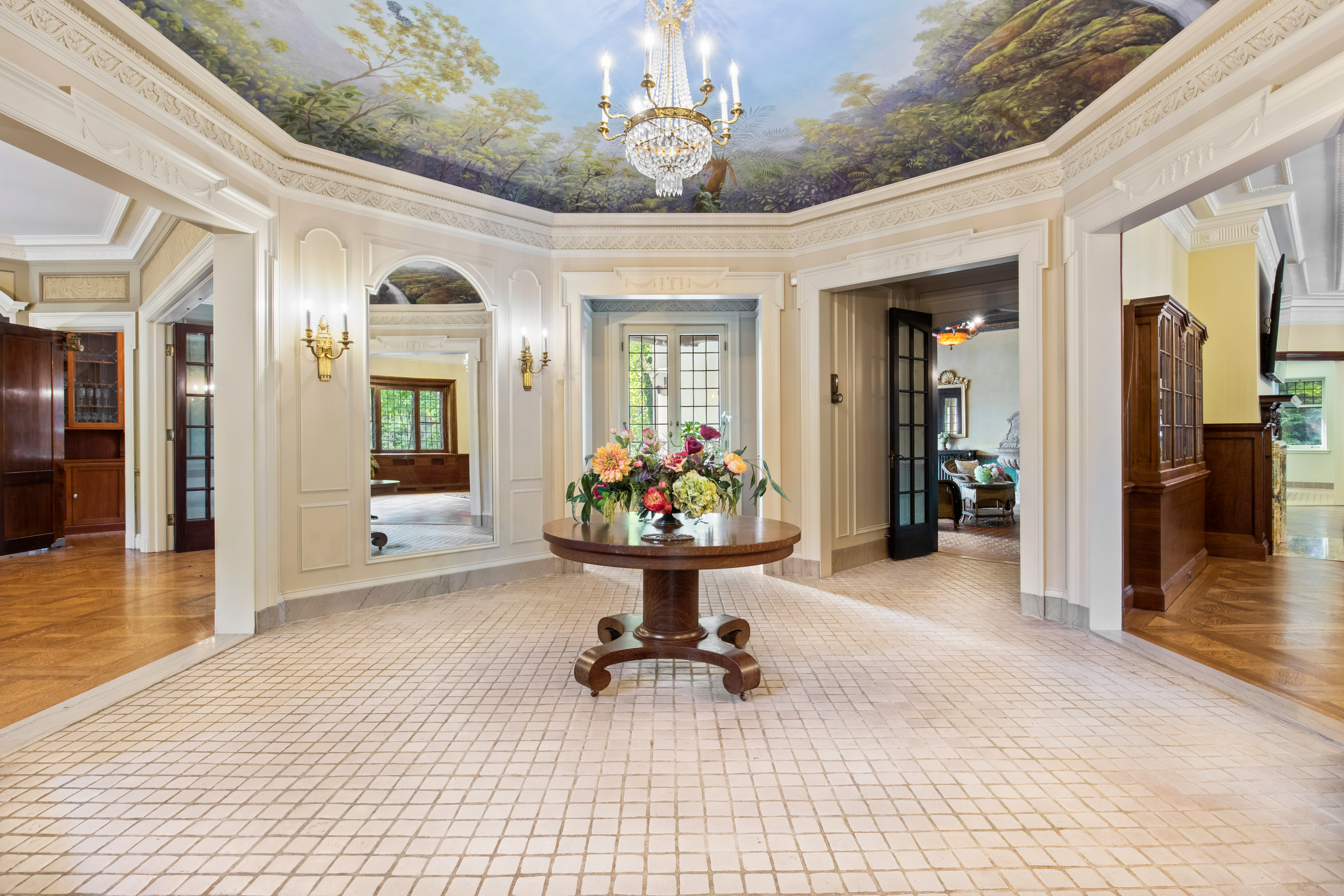 Welcome to “Twin Gables,” a rare opportunity to own one of Rochester’s most distinguished and historically significant estates. Built in 1912 for Anna Bausch Drescher—daughter of John Jacob Bausch, the esteemed co-founder of Bausch & Lomb—this palatial nine bedroom, seven bathroom residence has been meticulously restored with over 6 million dollars in enhancements. Nestled on three private, landscaped acres adorned with award-winning gardens, koi ponds, and serene waterfalls, this 8,118 sq ft masterpiece offers exceptional privacy and timeless grandeur. Inside, refined luxury meets historic craftsmanship. Elegant living spaces, an exquisite stained-glass conservatory, and a grand ballroom set the tone. The chef’s kitchen features a six burner/grill Viking range with double ovens, warming oven, breakfast bar, and glass display nooks. The sunroom dazzles with a Valerie O’Hara/Pike’s trans-illumination leaded glass ceiling and original tile flooring. A 2,500-bottle wine cellar, climate controlled for temperature and humidity, is hidden behind a custom-painted bank vault door. The carriage house includes a living room, kitchen, dining area, breakfast bar, leaded glass, built-ins, instant-on lighting, its own washer/dryer, and hot water heater. Additional amenities include a heated driveway from carport to garage, an elevator, and unmatched privacy in the heart of Rochester. Note that the 1,098 sq ft in-law carriage house connecting the apartment to the house has since been added for a total of 9,318 sq ft compared to the current tax record total of 8,118 sq ft.