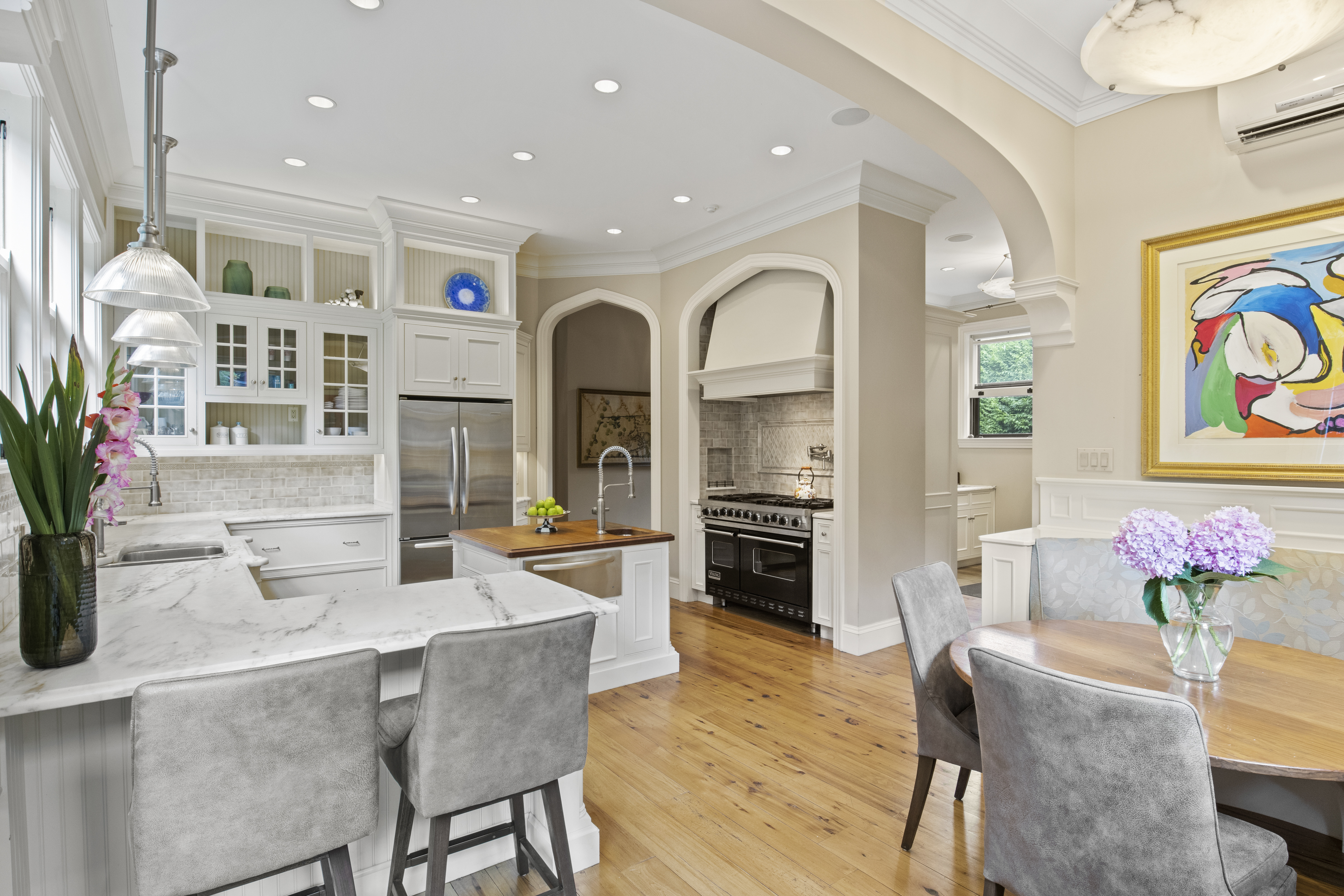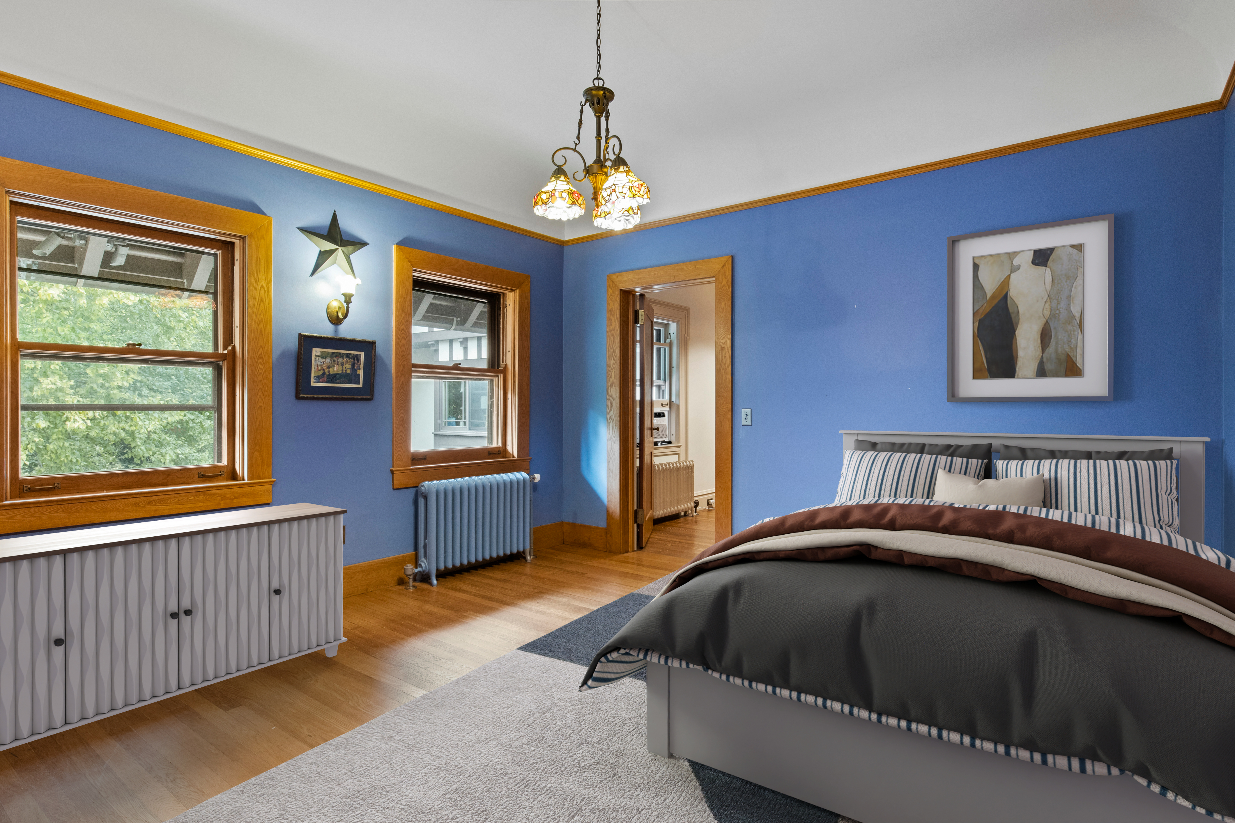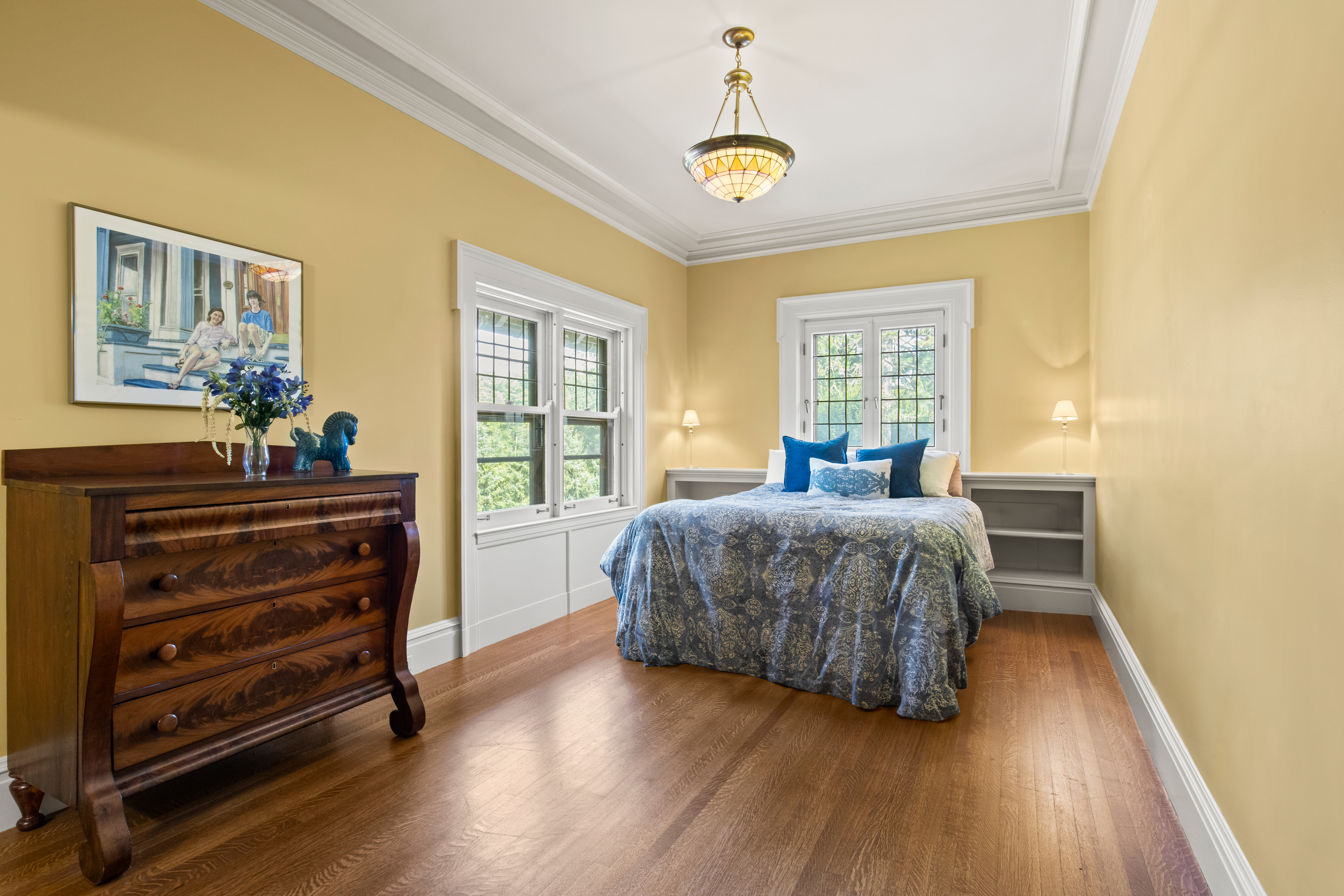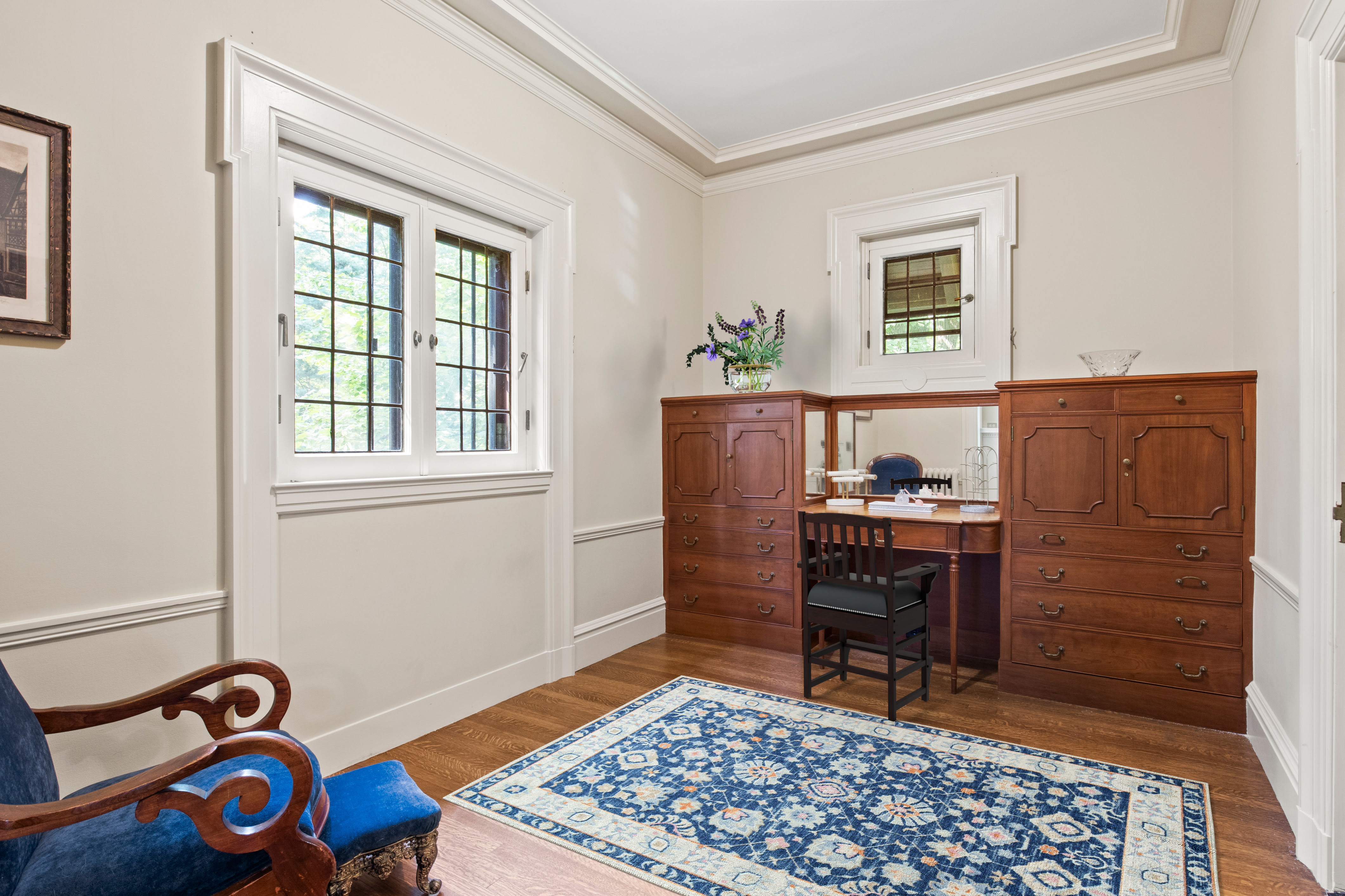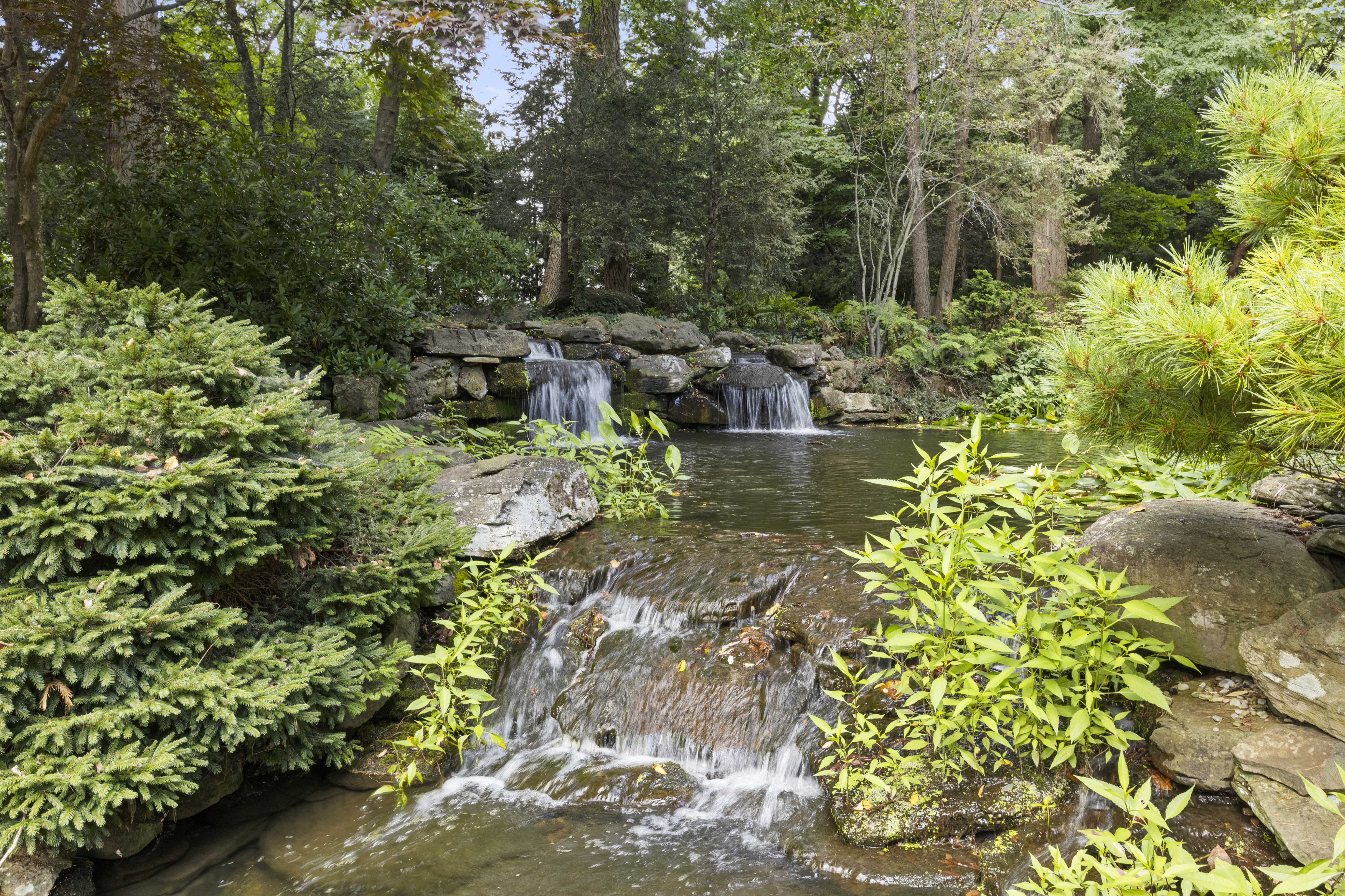 Welcome to “Twin Gables,” a rare opportunity to own one of Rochester’s most distinguished and historically significant estates. Built in 1912 for Anna Bausch Drescher—daughter of John Jacob Bausch, the esteemed co-founder of Bausch & Lomb—this palatial nine bedroom, seven bathroom residence has been meticulously restored with over 6 million dollars in enhancements. Nestled on three private, landscaped acres adorned with award-winning gardens, koi ponds, and serene waterfalls, this 8,118 sq ft masterpiece offers exceptional privacy and timeless grandeur. Inside, refined luxury meets historic craftsmanship. Elegant living spaces, an exquisite stained-glass conservatory, and a grand ballroom set the tone. The chef’s kitchen features a six burner/grill Viking range with double ovens, warming oven, breakfast bar, and glass display nooks. The sunroom dazzles with a Valerie O’Hara/Pike’s trans-illumination leaded glass ceiling and original tile flooring. A 2,500-bottle wine cellar, climate controlled for temperature and humidity, is hidden behind a custom-painted bank vault door. The carriage house includes a living room, kitchen, dining area, breakfast bar, leaded glass, built-ins, instant-on lighting, its own washer/dryer, and hot water heater. Additional amenities include a heated driveway from carport to garage, an elevator, and unmatched privacy in the heart of Rochester. Note that the 1,098 sq ft in-law carriage house connecting the apartment to the house has since been added for a total of 9,318 sq ft compared to the current tax record total of 8,118 sq ft.