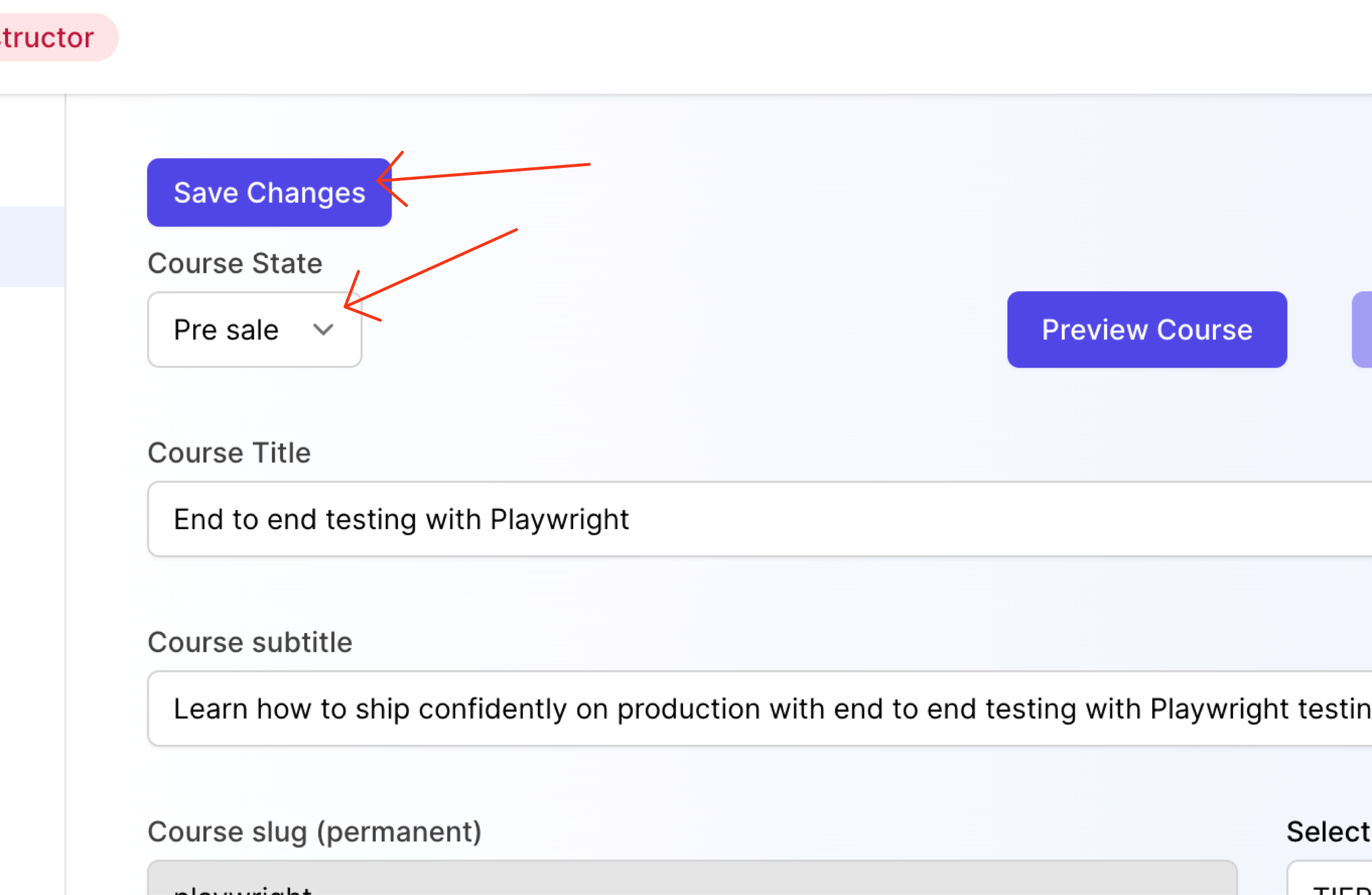 In order to enable presale mode, simply toggle your course state from Draft to Presale in the instructor dashboard course edit menu. Don't forget to Save Changes once you're done.