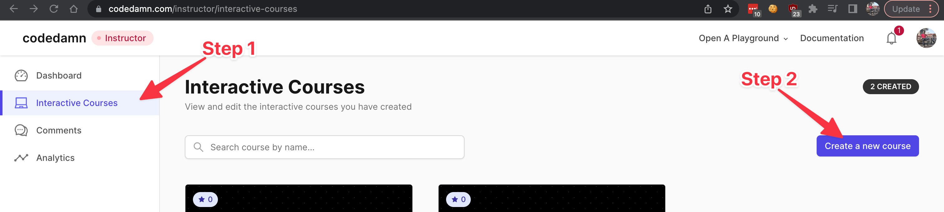 Create a new course on https://codedamn.com/instructor/interactive-courses