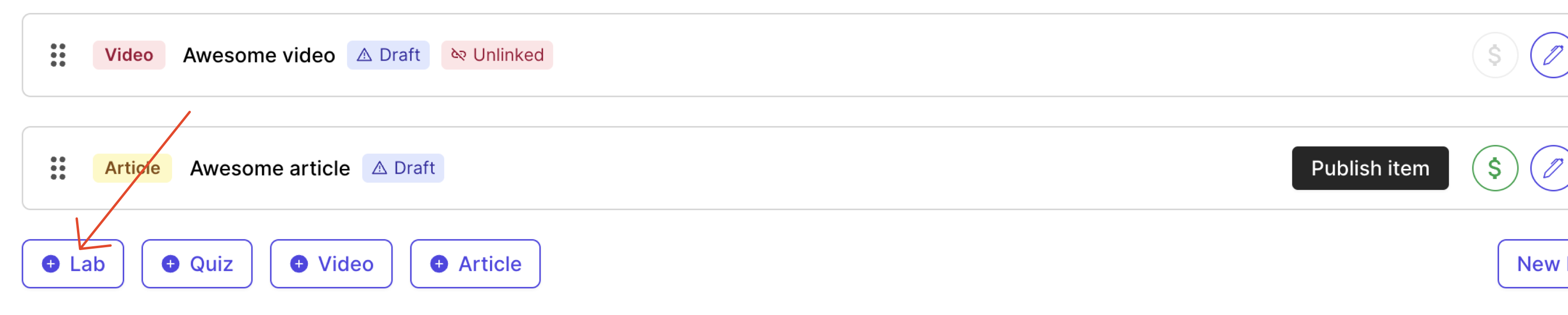 - Add a new item lab in your course curriculum page