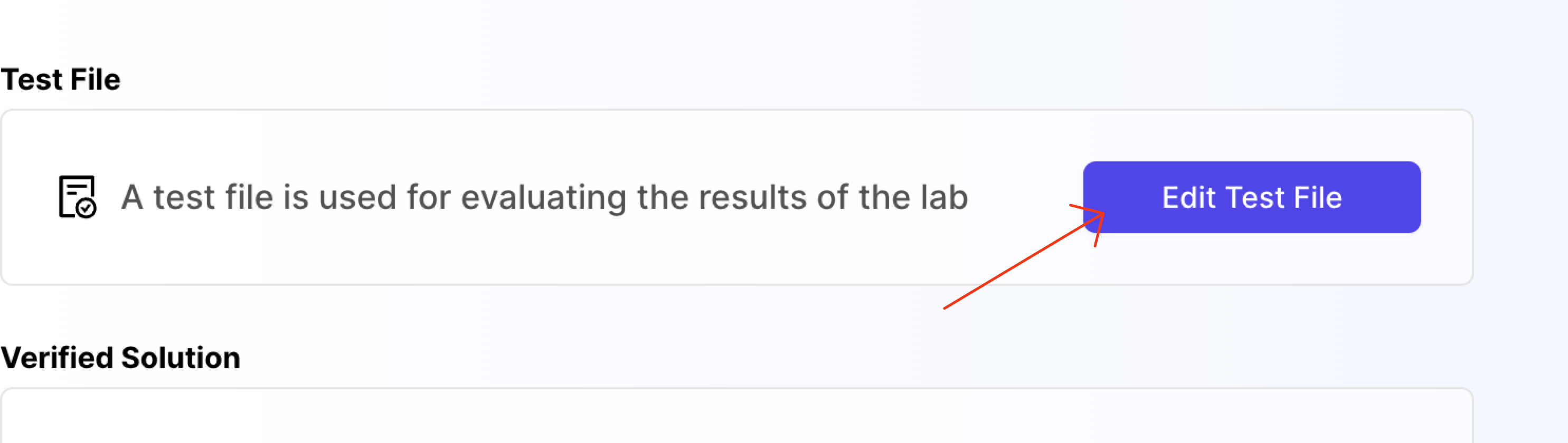 Once you save the lab, you will see a button named Edit Test File in the Evaluation tab. Click on it.