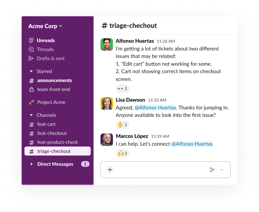 Collaboration in Slack happens in real time — you can find support or delegate tasks in the flow of conversation. And when those conversations happen in channels, you can prioritize your effort on just the tasks and work that need your attention.